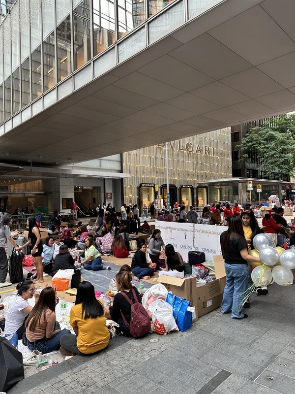 그래서 싱가포르 사람들의 한 달 평균 수입이 한화로 650만원(전세계4위, 아시아1위)인 반면, 청소나 가사 도우미와 같이 3D 일을 하는 외국인 노동자의 한 달 수입은 4-60만 원 정도다. 그 월급으론 비싼 싱가포르 물가에 식당에 가기 힘들다. 그래서 저렇게 바닥에 모여 앉아 식사를 하고 있는 것이었다. 정부에서도 외국인 노동자들이 굉장히 낮은 임금을 받고 일하고 있기 때문에 일주일 하루 일요일에 저렇게 노는 문화를 굳이 막거나 제지하지는 않는 분위기라고 했다.