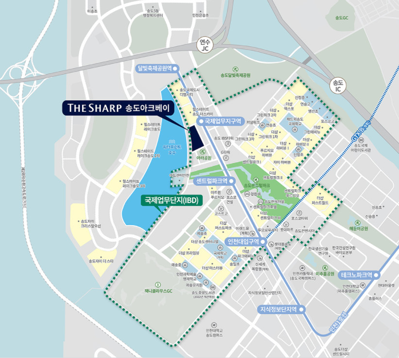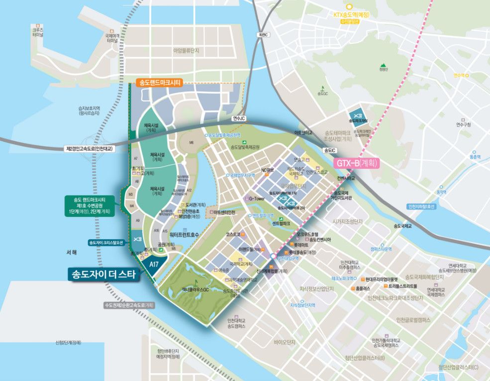 위치는 A17블록입니다. 조감도처럼 물론 오션뷰도 중요하지만 앞서서 A3블록에서 분양했던 송도 더샵 아크베이가 9억 이하(84A타입 기준 최고가 8억원)에 국제업무지구역을 눈앞에 두고 중심지역 안쪽이었다면, 확실히 아쉬운 점은 있습니다. 지하철역 역세권 단지인지 아닌지는 최근 부동산 시장에서 보았듯이 너무나 중요한 부분인데 높은 분양가의 단지지만 역과는 거리가 있습니다.
