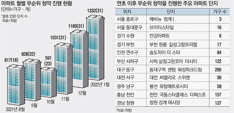 우선 분양하는 단지가 굉장히 입지적으로 열악한 곳에 위치했다거나 분양가가 너무 높은 경우를 생각해 볼 수 있겠네요. 분양가가 너무 높다는 것은 무슨 이야기일까요? 청약통장을 활용해서 새 아파트를 분양받기만을, 당첨되기만을 기다리는 이유에 답이 있습니다. 우리가 아파트 청약에 당첨되려는 것은 누구나 살고 싶을만한 경쟁력 있는 입지에 탄생하는 새 아파트 단지에 시세보다 저렴한 가격으로 내 집 장만을 하고 싶어서겠죠. 그런데 만약에 그 아파트 최초 분양 가격이 현재 주변 아파트 시세와 비슷하거나 아주 조금 비싼 정도라면 어떨까요? 청약통장을 써가면서 저렴한 가격으로 분양받았다는 메리트도 떨어지고 심지어 입주까지 몇 년 사이에 오히려 분양받은 가격보다 아파트 가격이 떨어지는 일이 생기는 것은 아닐까? 불안한 마음이 들 수도 있습니다. 최근 몇 년간의 부동산 불장의 연속인 시장에서는 상상하기도 어려운 이야기였죠. 그저 어떤 단지라도 하나 당첨되면 그 자리에서 돈 버는 거다, 무조건 되면 로또 청약이라는 분위기였습니다. 일단 당첨되고 그 후에 고민합시다라는 선당후곰라는 말도 등장을 했었죠. 그런데 몇 달 전부터 현장에 가보면 아파트가 팔리지도 않고 그렇다고 사려고 알아보는 사람도 줄어든 보합세라는 이야기가 나오고 있습니다. 매물이 하나도 없던 단지에 매물이 늘어나거나 급매물이 생긴 모습도 조금 보이고요. 여기에 수도권 아파트의 분양가 자체는 높아지고 금리 인상과 대출 규제가 심화되면서 청약시장도 이전보다 주춤하는 모습이네요. 최근 무순위 청약을 진행한 수도권의 아파트 단지들입니다. 100세대에 달하는 단지도 제법 보이죠.