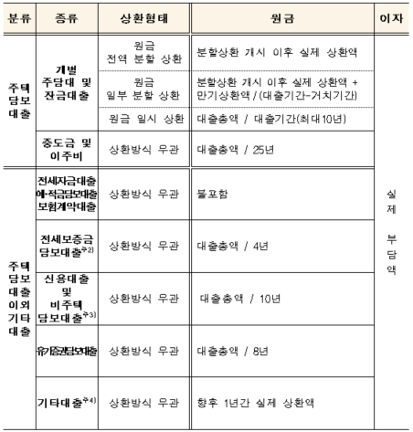 * 모든 대출 = 주택담보대출 연간 원리금 상환액+기타 부채 연간 원리금 상환액(신용대출, 카드론, 할부금융, 자동차 리스 등 모두 포함)