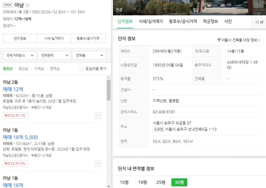 사진출처 : 네이버부동산 (오금 아남아파트)