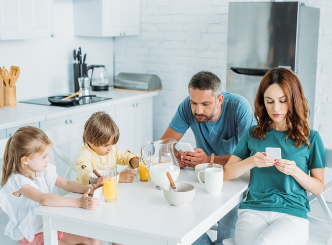 그는 아이가 14살이 될 때까지 휴대전화 사용을 금했습니다. 특히 식탁에서 휴대전화를 사용하거나 봐서는 안 된다는 가정 내 준칙을 만들었습니다. 딸이 비디오 게임에 빠지기 시작하자, 그가 딸에게 모자를 씌워 게임을 방해한 에피소드는 유명합니다. 그는 전자기기가 줄 수 있는 중독성의 위험을 일찍 간파한 것입니다.