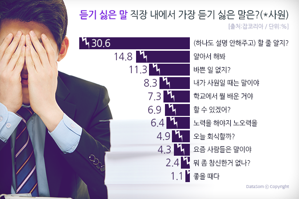 인간관계는 말로 시작되어 말로 꼬이고 말로 풀어집니다. 한 취업 포털 잡코리아에서 직장인을 상대로 가장 듣기 싫은 상사의 말이 무엇인지를 조사한 적이 있습니다. 그 결과 ‘벌써 퇴근해?’가 응답률 34.1%로 가장 높았습니다. 그밖에 토요일 또는 공휴일 전날 ‘내일 출근이다’ ‘일이 없나 봐’ ‘이것밖에 못 해’ ‘회의하자’ ‘휴가 취소됐다’등이 있었습니다. 상사의 말투를 묻는 질문에는 ‘권위적이다’라는 응답률이 49.3%로 가장 높았습니다.