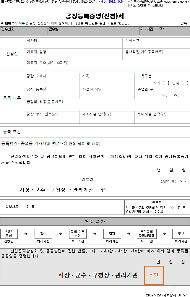 → 제조시설설치 및 공장등록 신청 → 공장등록 및 증명서 발급