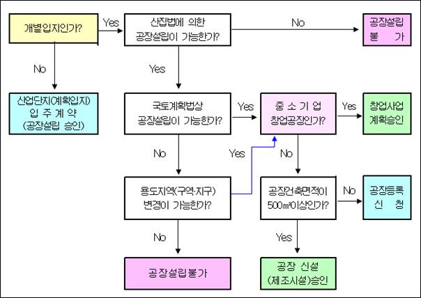 공장을 설립하려는 입지의 토지이용계획, 행위제한내용, 규제안내서, 고시도면의 내용은 국토해양부의 <토지이용규제정보서비스(luris.molit.go.kr)>에서 확인할 수 있고, 공장을 설립하려는 부지에 대해 공장설립이 가능한지 여부는 <공장설립온라인지원시스템(www.femis.go.kr)>을 통해 확인할 수 있다.