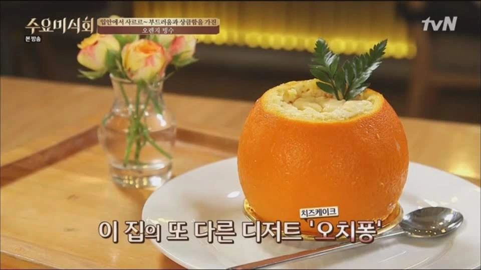 생크림과 오렌지 셔벗의 조화라니 듣고 보도 못한 이 빙수는 손님들에게 인기 메뉴가 되었고