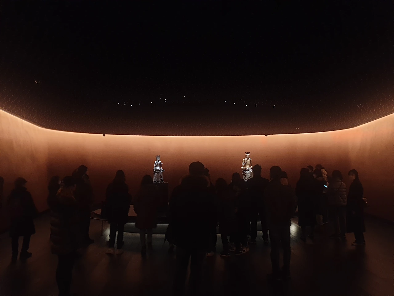 반가사유상. 나같이 지식이 얕은 사람도 그 절묘한 미소를 보고 있으면 이유 없이 마음이 평온해진다. 전시장의 그 넓은 공간은 오롯이 이 작품들을 조명하기 위해 존재했고 관람객들은 모두 숨 죽이며 반가사유상의 미소에 젖어들었다.