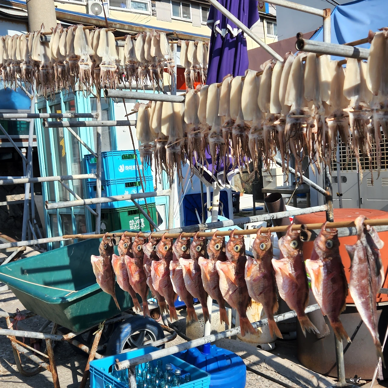 마지막 날 아침, 아침 일찍엔 피데기를 사기로 한 약속 장소에 나갔는데 할머니가 나오지 않으셔서 동공 지진이 일어난 우리. 노쇼에 마상을 입은 채 다른 할머니에게 피데기를 샀다.