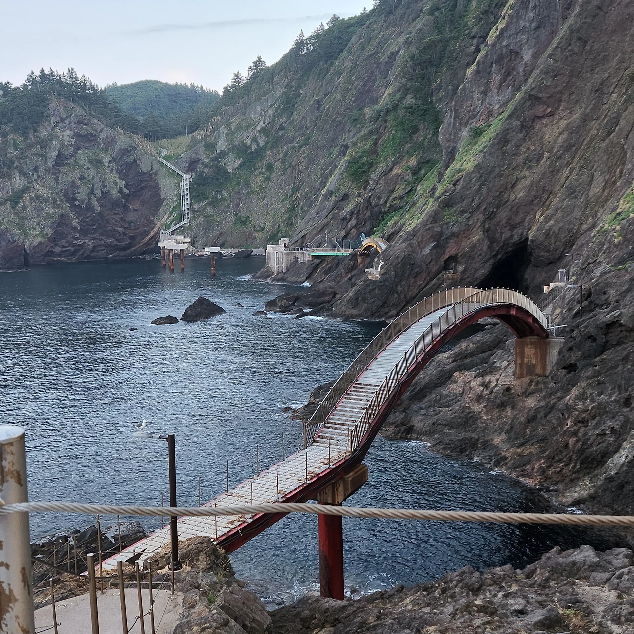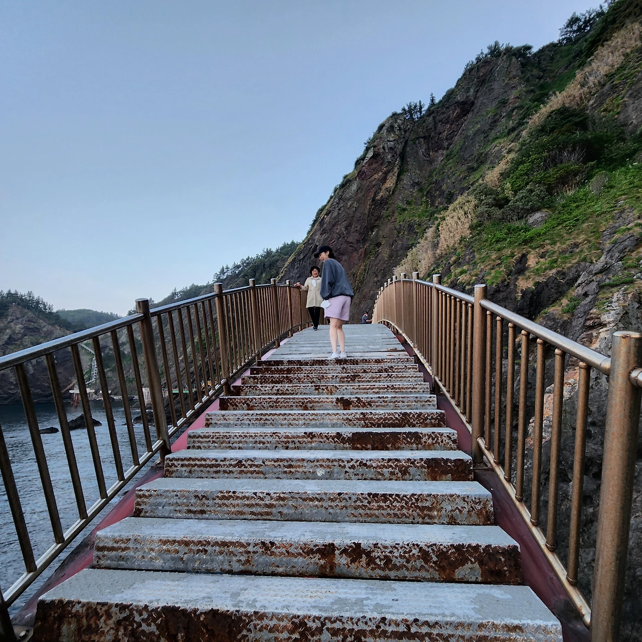 그런데 누가 기획했을지 너무 궁금한 '미치광이 해상 구름다리'도 있다. 안 그래도 거센 바다에서 건너는 평평한 다리도 무서운데, 오르기만 해도 삐걱거리는 녹슨 스산한 구름다리가 있다. 계단 마디마디마다 발아래가 스마트폰이 빠지기 딱 좋다.