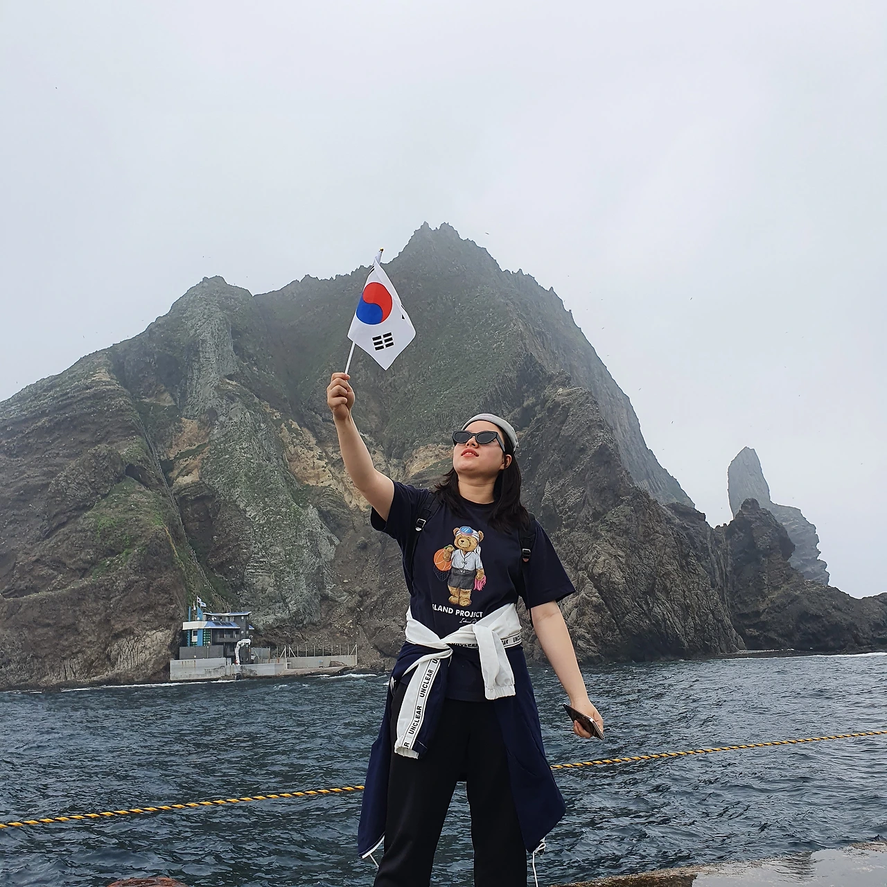 독도경비대에게 선물할 위문 물품을 준비한 분들도 많았다. 독도 앞에서 유관순 열사의 한복을 입고 사진을 찍는 여성 분들도 있었다. 독도는 동도와 서도로 나뉘는데 우리는 동도에 내려서 잠시 둘러보고 기념사진을 남겼다. 독도는 제페토(메타버스)에서 가본 것이 전부였는데 이렇게 발을 디딜 수 있다니 감흥이 새롭고 얼떨떨했다.