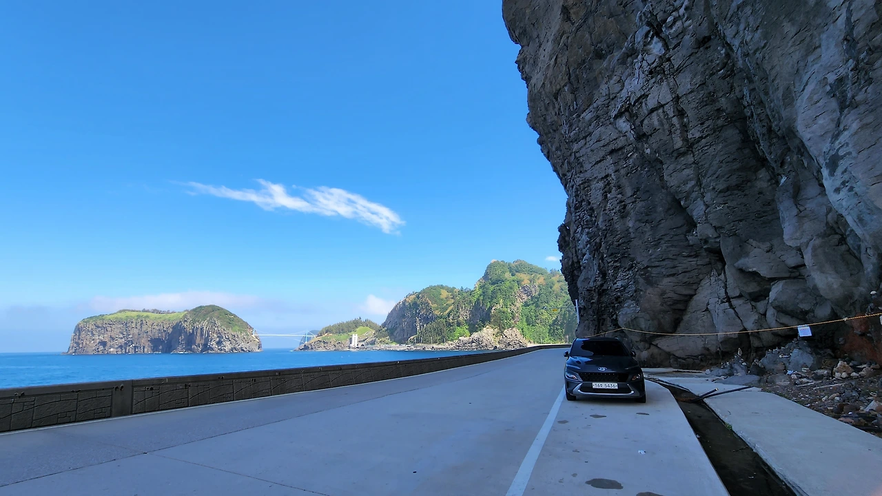 이후 드라이브 코스는 오각형 울릉도에 동에서 서쪽으로 드라이브하는 코스였다. 날이 너무 좋아서 같은 길을 달리는 데도 다른 기분이 들었다. 상선암 앞에 내려서 기념사진도 찍었다. 두 눈으로 보면 영화 <아바타>에서나 볼법한 풍경이 펼쳐지는데 감탄이 절로 나왔다. 살면서 이런 풍경과 이런 날씨를 본 게 처음인 것 같다.