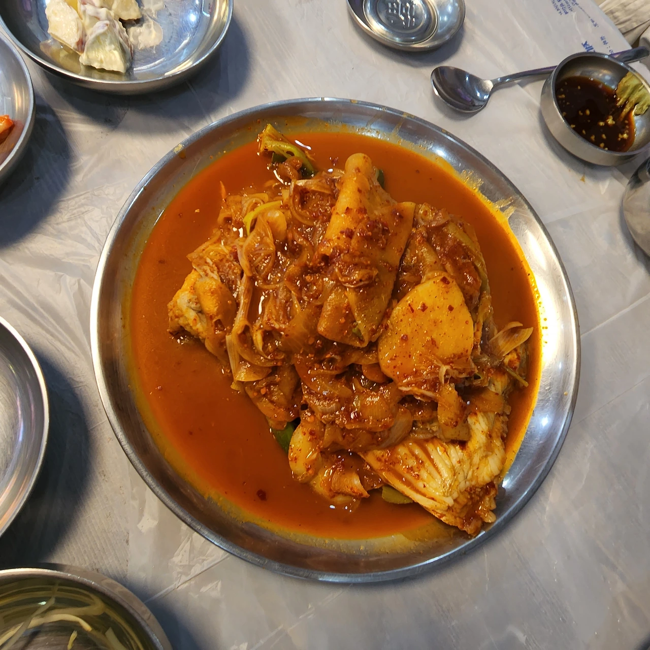 이기가 그 유명한 안목해변인가. 잠시 구경하다가 택시 타고 <원인숙 고성 생선찜>으로 향했다. 3시가 조금 넘은 시간이었는데 딱 브레이크 타임이 끝나 여유롭게 입장했다. 가장 유명한 가오리찜 소 자리를 시켰다. 촉촉하니 밥맛 좋고 오래간만에 맵고 칼칼한 음식이 나오니 반갑다.