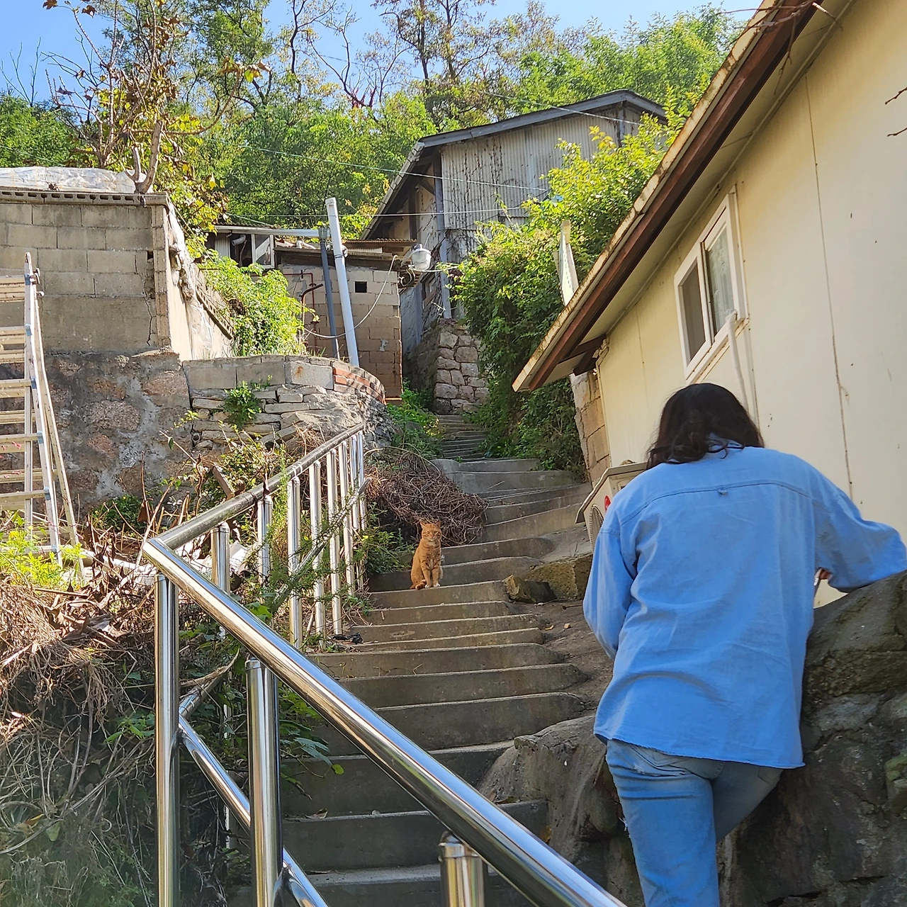 다들 본인의 시간과 시각으로 마을을 담고 있었다. 그 마음을 알았던 걸까. 길가던 고양이도 본인이 모델임을 알고 포즈를 취한다.