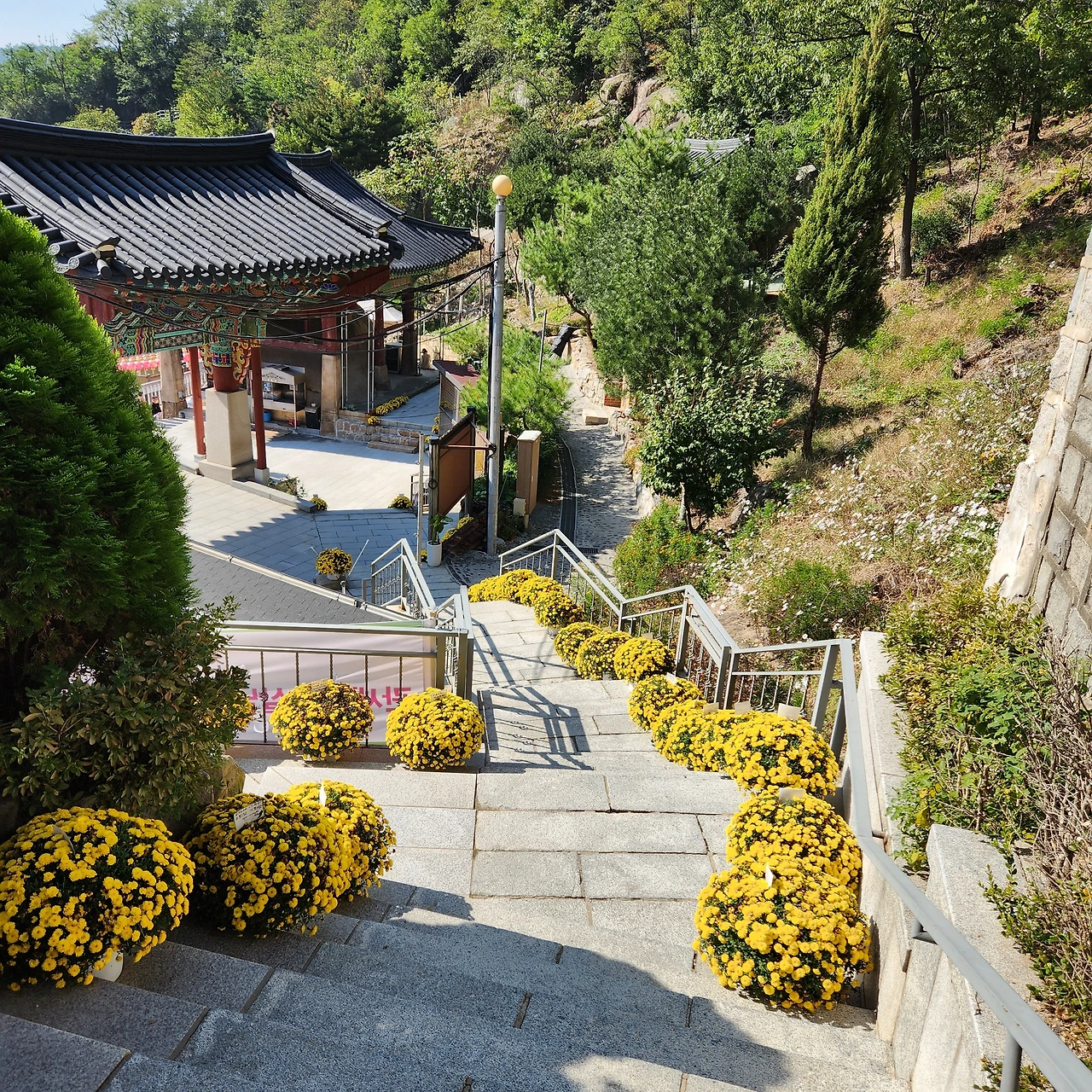 걷다 보니 꽃들로 수놓은 옥천암이라는 작은 절이 있었다.