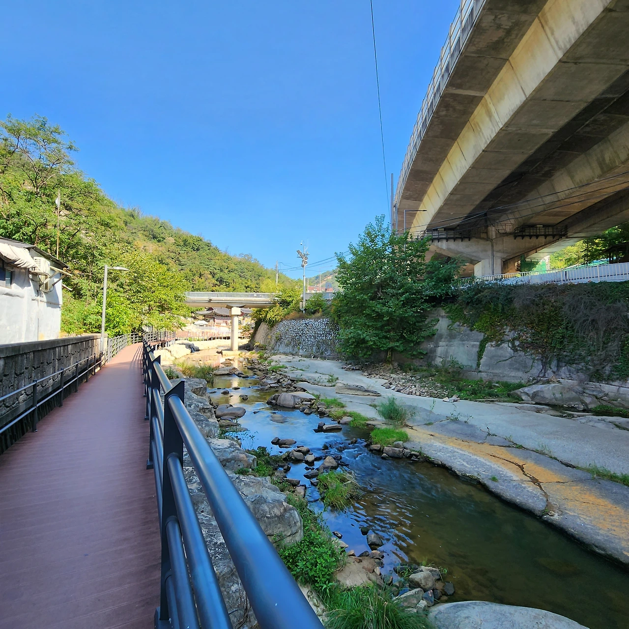 개미마을에서 흙길을 따라 어느 초등학교 아래에 있던 근린공원 쪽으로 하산했다. 홍제천이 이어진다.