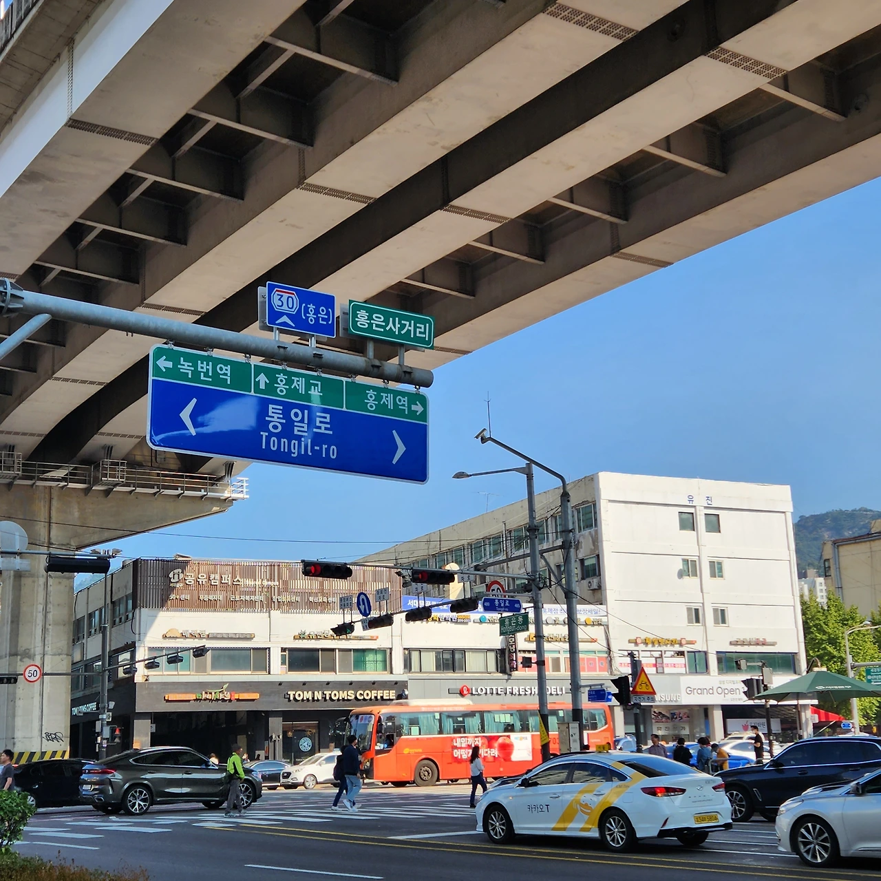 홍제동 개미마을에 가자. 홍제역에서 마을버스 서대문 07을 타고 가야 한다. 배차 간격이 20분 정도라 거리를 구경하며 시간을 때웠다. 버스가 도착하자 동네 사람들, 등산객들로 금세 만석이다.