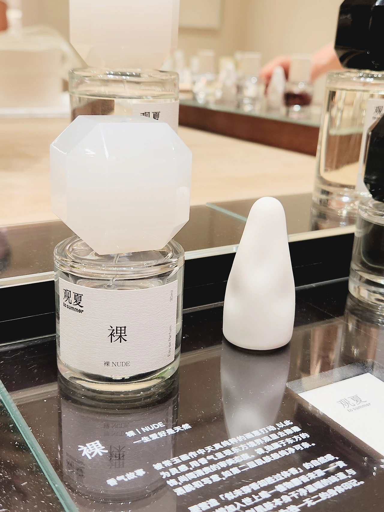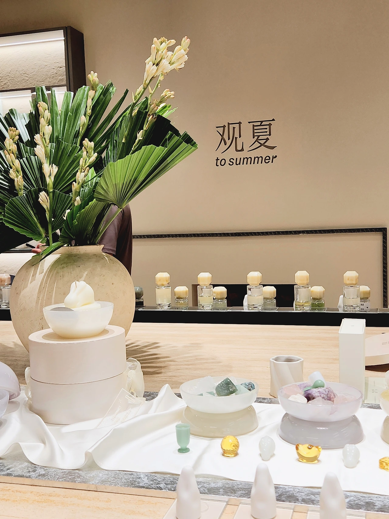 ‘관샤(观夏)’. 이름 그대로 ‘여름에게’. 중국의 니치 향수 브랜드다. 브랜드 이름이 여름이라니, 그 이름에 현혹되지 않을 수 없었다. 로레알이 일부 지분을 투자했고, 세 명의 창업자 중 한 명은 한국인 디자이너인 잘 나가는 브랜드다. 상하이 우캉루에 자리한 플래그십 매장은 이솝과 논픽션 사이 어딘가의 느낌적인 느낌이었다.