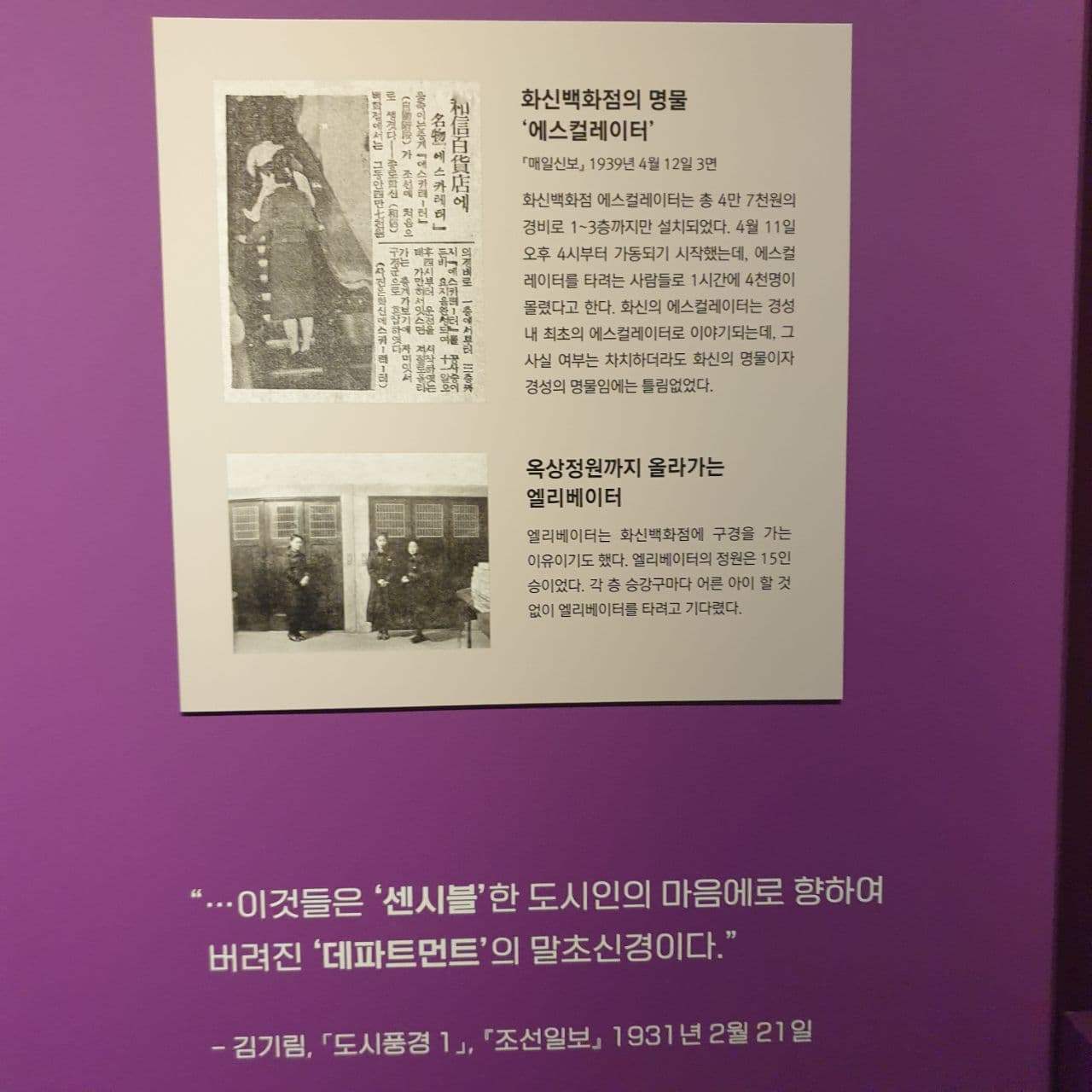 일제강점기의 어느 기자가 "1930년 경성은 실로 백화점 시대다."라고 설명한 사례에서 알 수 있듯, 당시 인구 30만 명(현재 2021년 4월 기준 서울 인구는 약 958만 명)의 경성에는 5대 백화점이 있었다. '미츠코시'를 비롯해 '조지아', '히라타', '미나카이', 그리고 오늘 이야기할 '화신백화점'이 있었다.