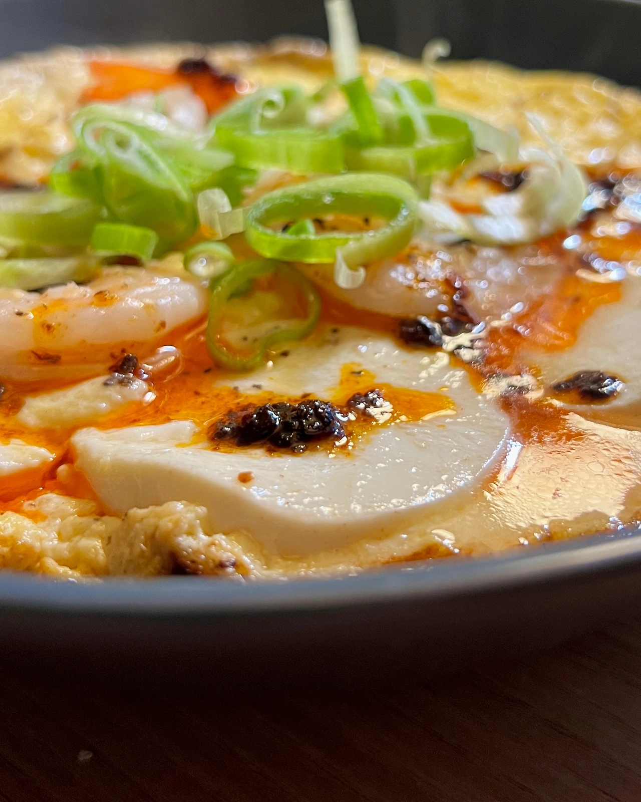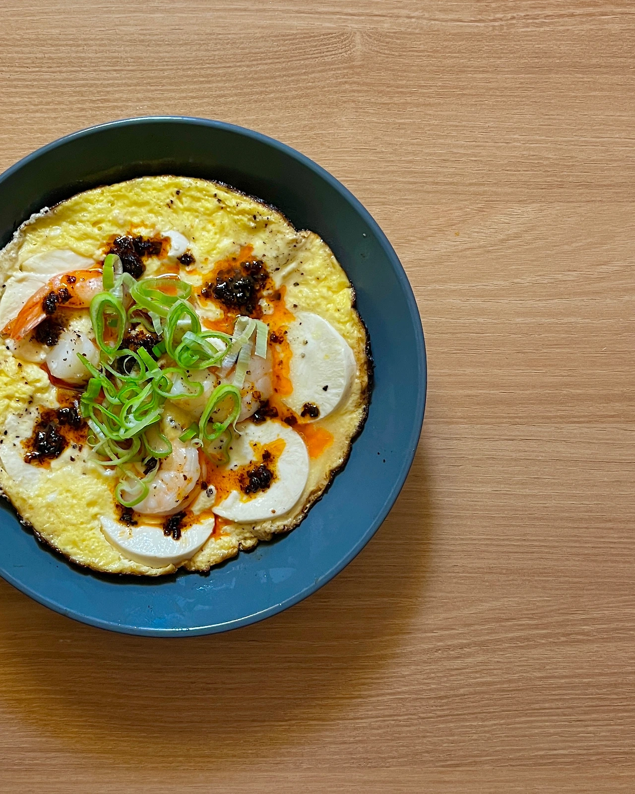 2. 접시에 담고 칠리 오일과 대파 얹는다.