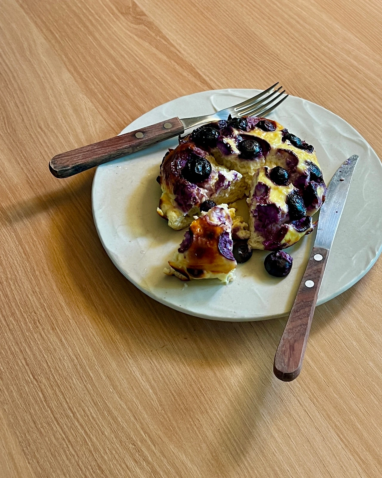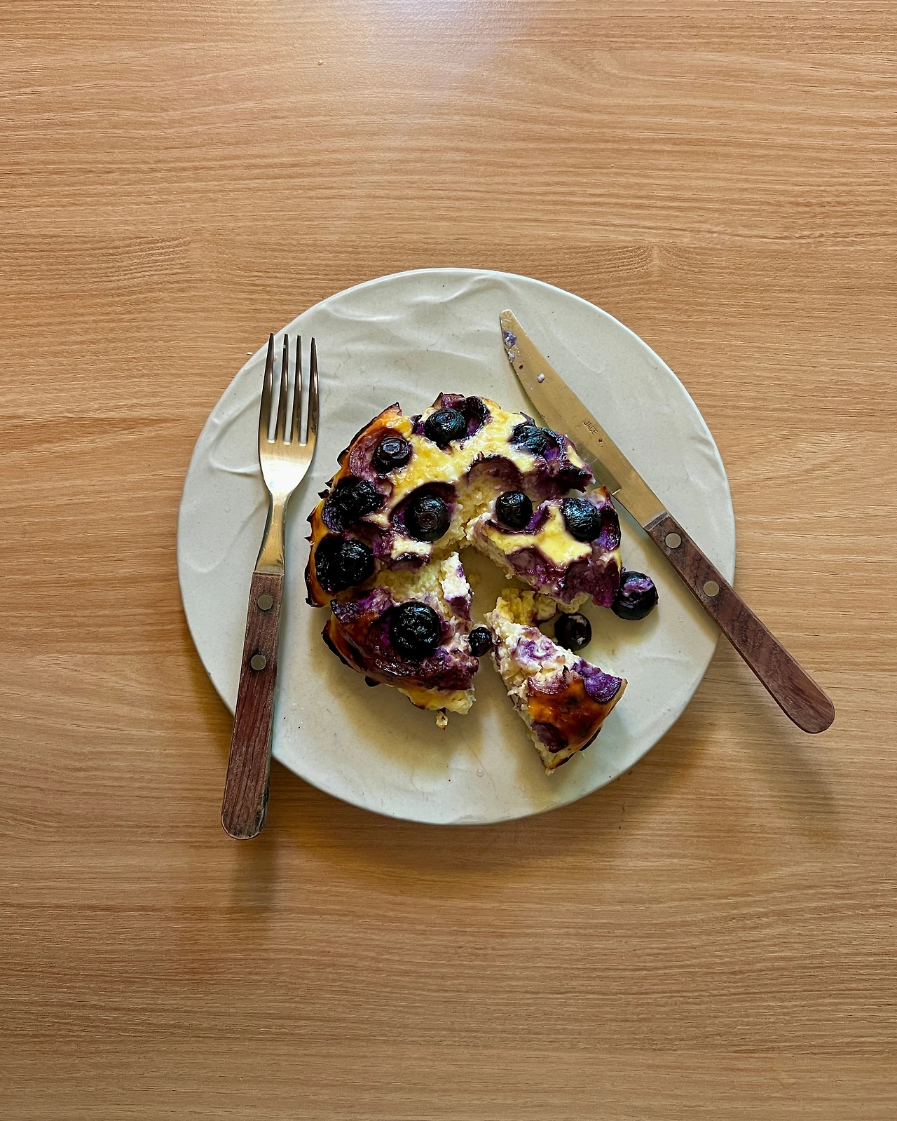 그릭요거트와 계란으로 만든 약 470kcal 치즈 프리, 블루베리 치즈케이크