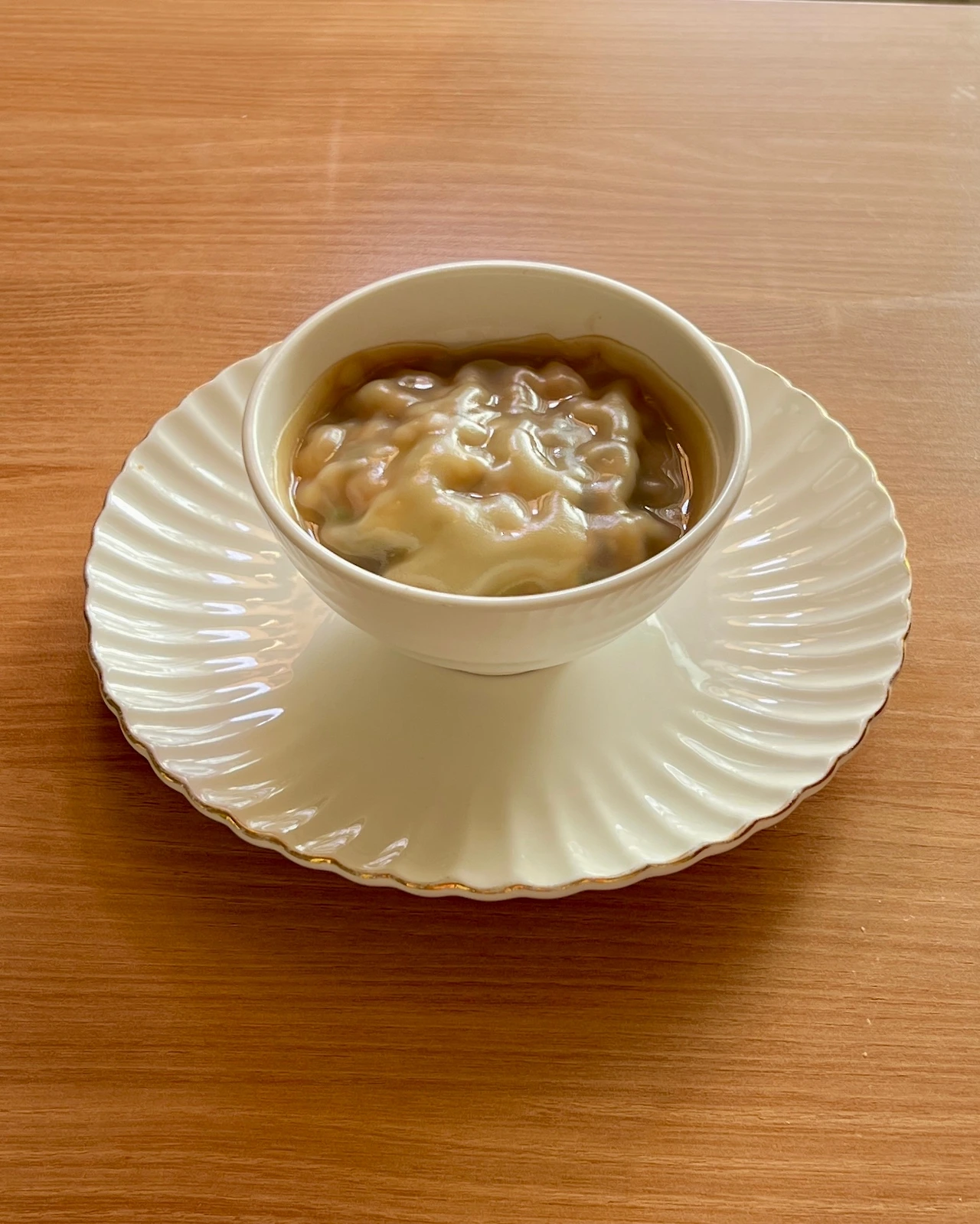 3. 2의 샤오롱바오 소를 그릇에 담고 만두피로 빈틈없이 덮어 찜기에 10분 찐다.