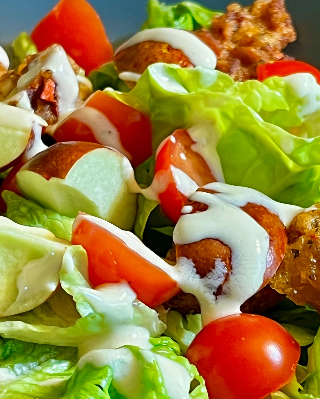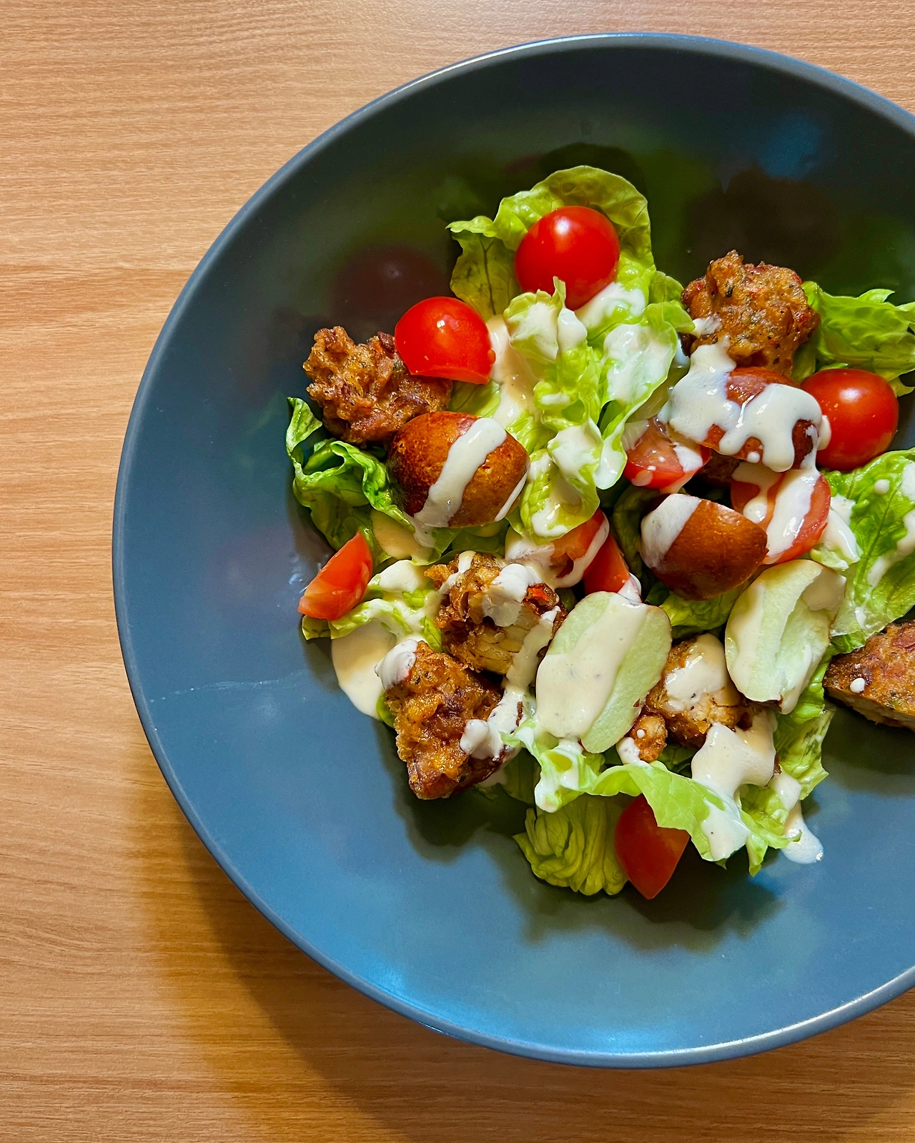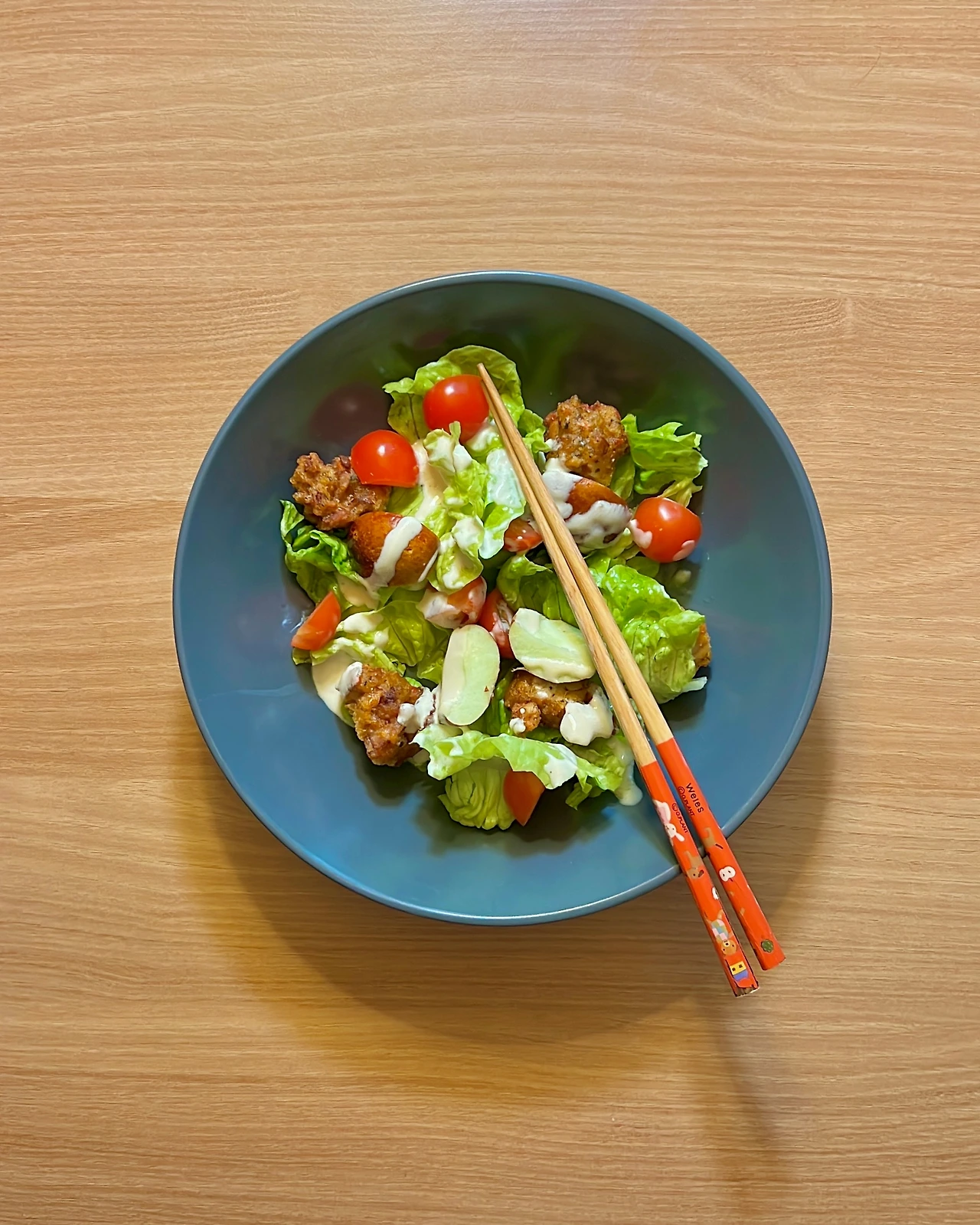 템페 튀김에 곁들인 아삭한 로메인의 식감이 매력적인 약 350kcal #템페샐러드