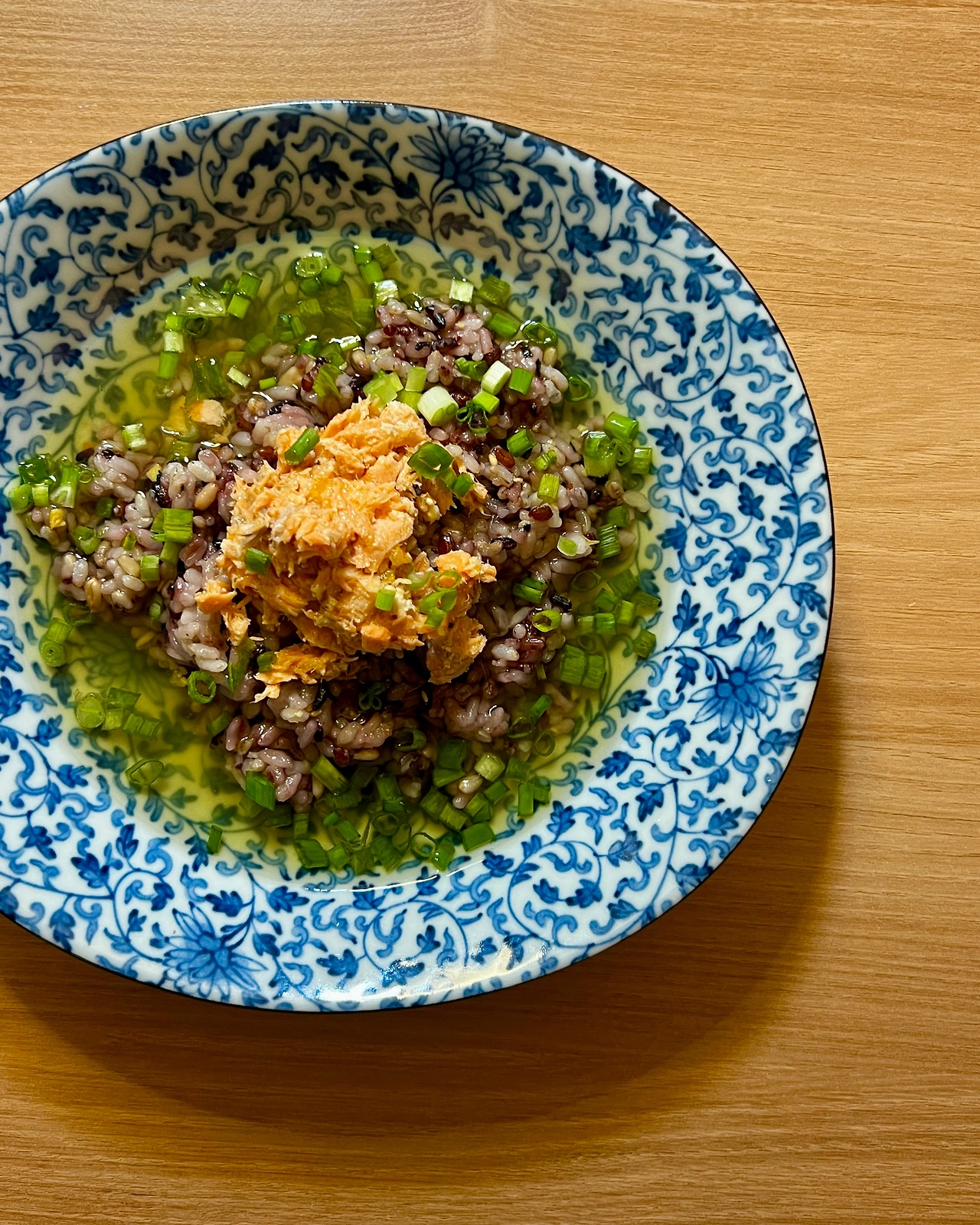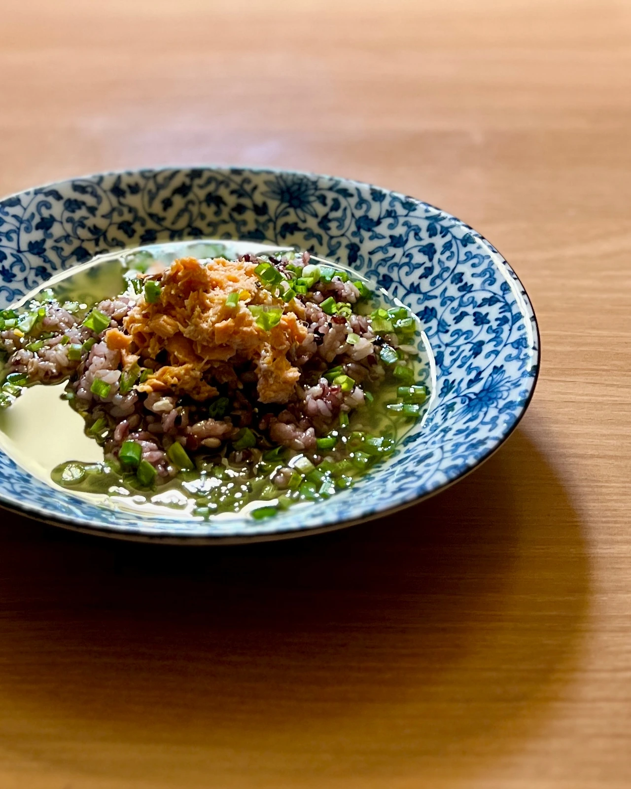 회사 일로 이른 아침 집을 나서야 하는 날이다. 오늘의 조식 오차즈케를 위해 어젯밤 잠들기 전에 다시마와 가쓰오부시를 우려서 감칠맛 폭발하는 국물을 만들려고 했는데, 다시마가 없다. 위기를 기회로. 냉동실을 뒤져 ‘육수의 전설 메가리’를 찾아내 국물을 냈다. 물론 쯔유만으로도 간편하게 만들 수 있지만 오늘은 조금 제대로 먹고 싶었다. 이유 없이 그렇게 하고 싶은 날이 있지 않은가 말이다.