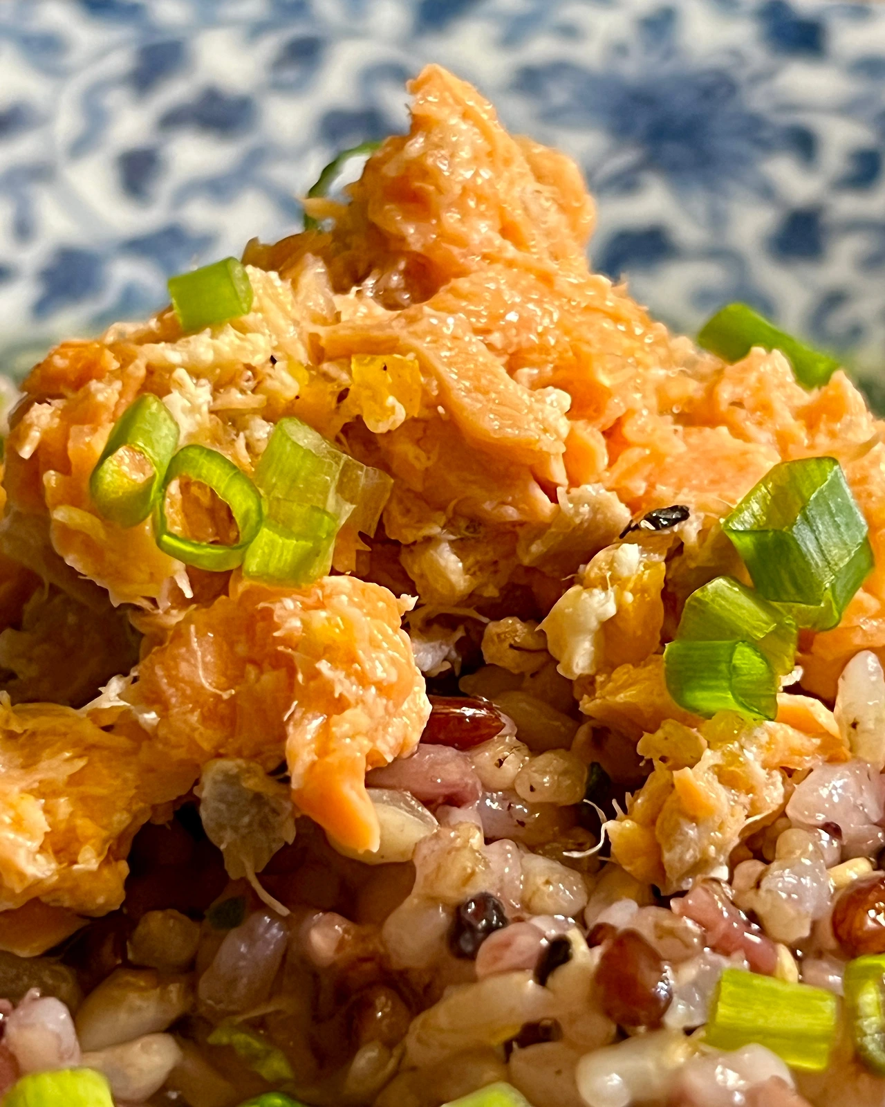 3. 믹싱볼에 오미밥 담고 밥이랑(후리가케) 1/2 봉지 넣고 골고루 섞는다.
