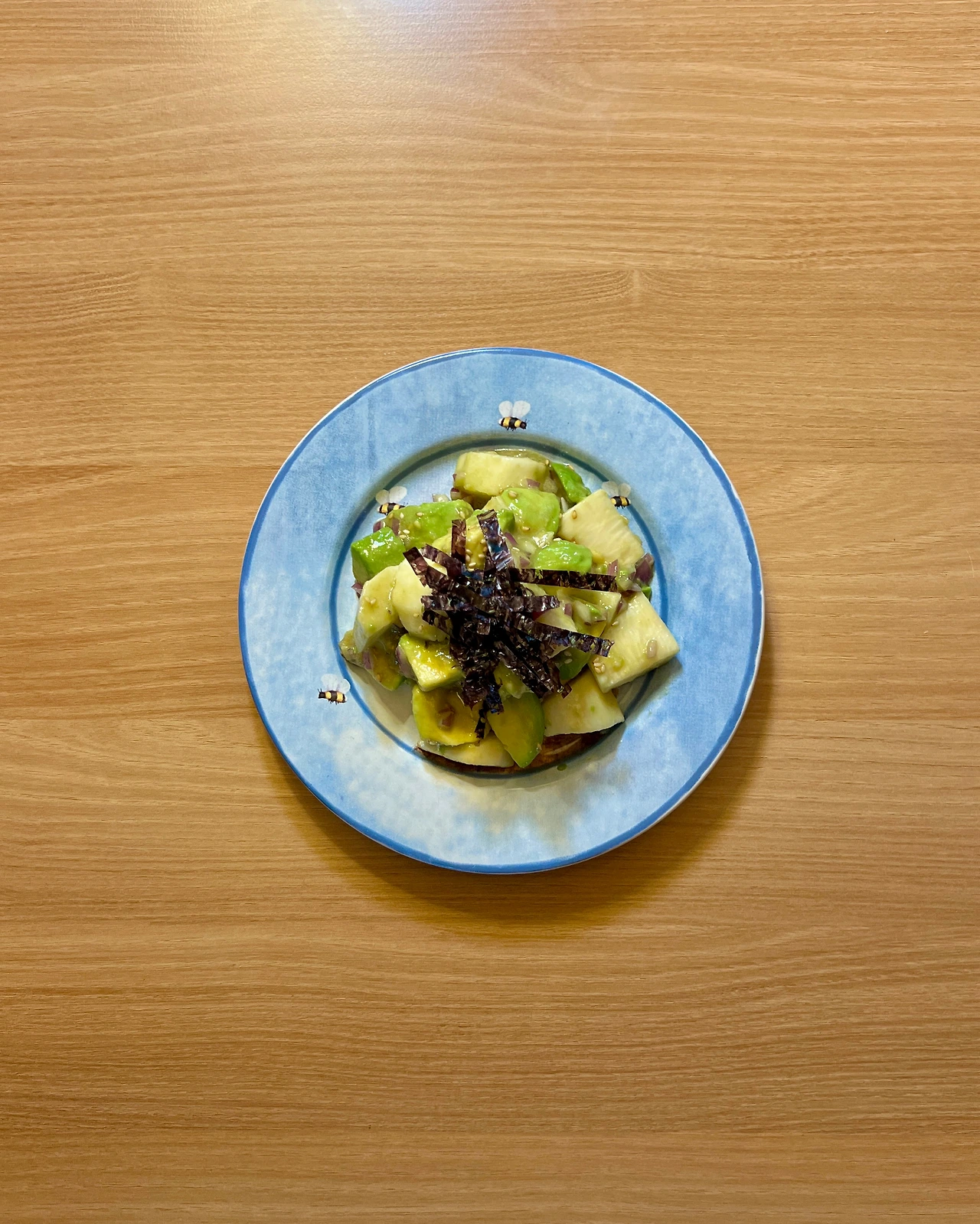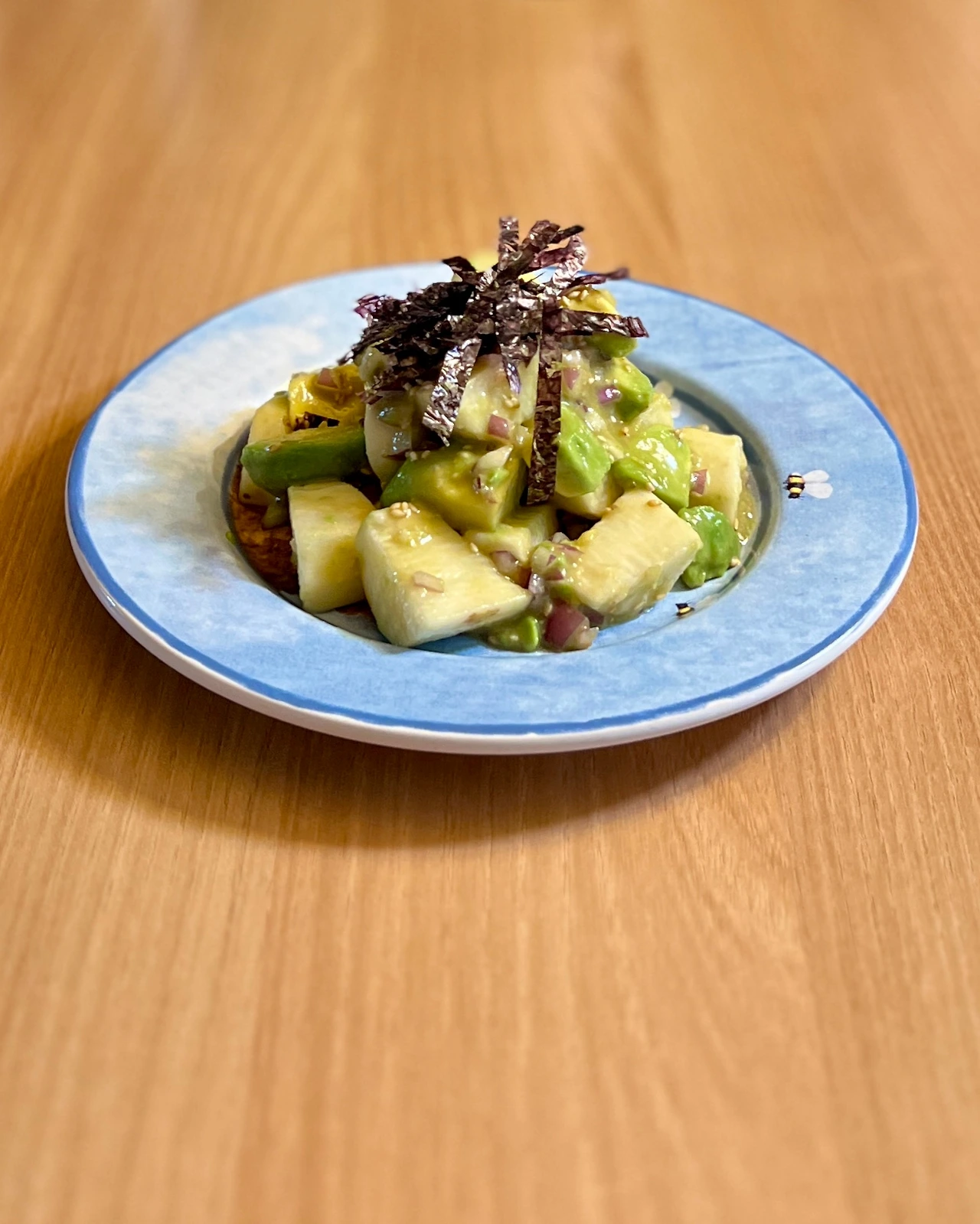 마 1개, 아보카도 1개, 적양파 1/4개, 참깨와 김 조금, (드레싱) 쯔유 2T, 참기름 1T, 참깨 1t