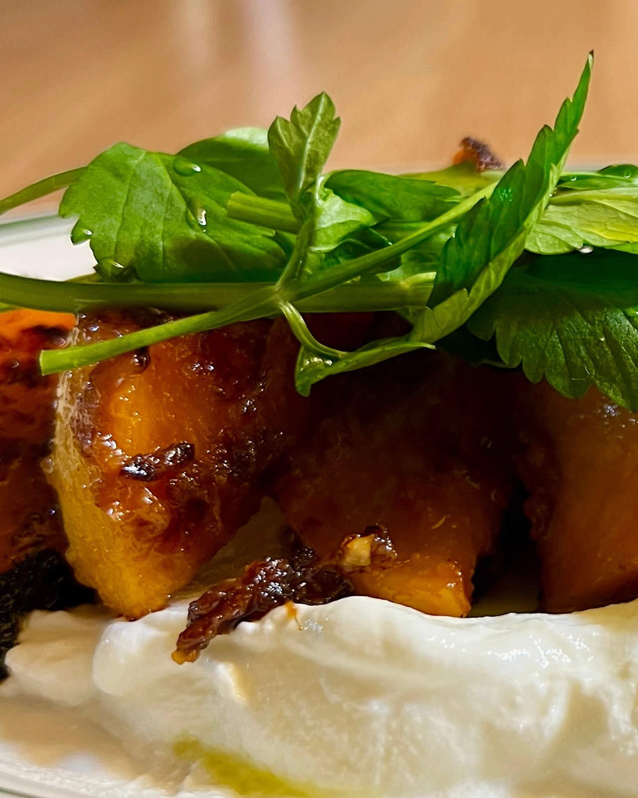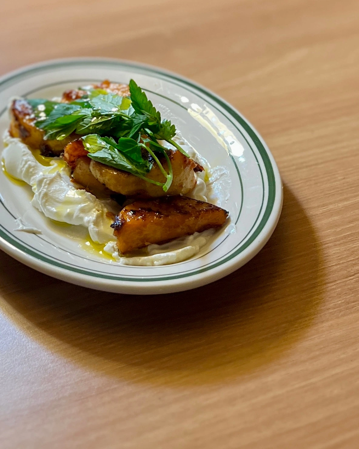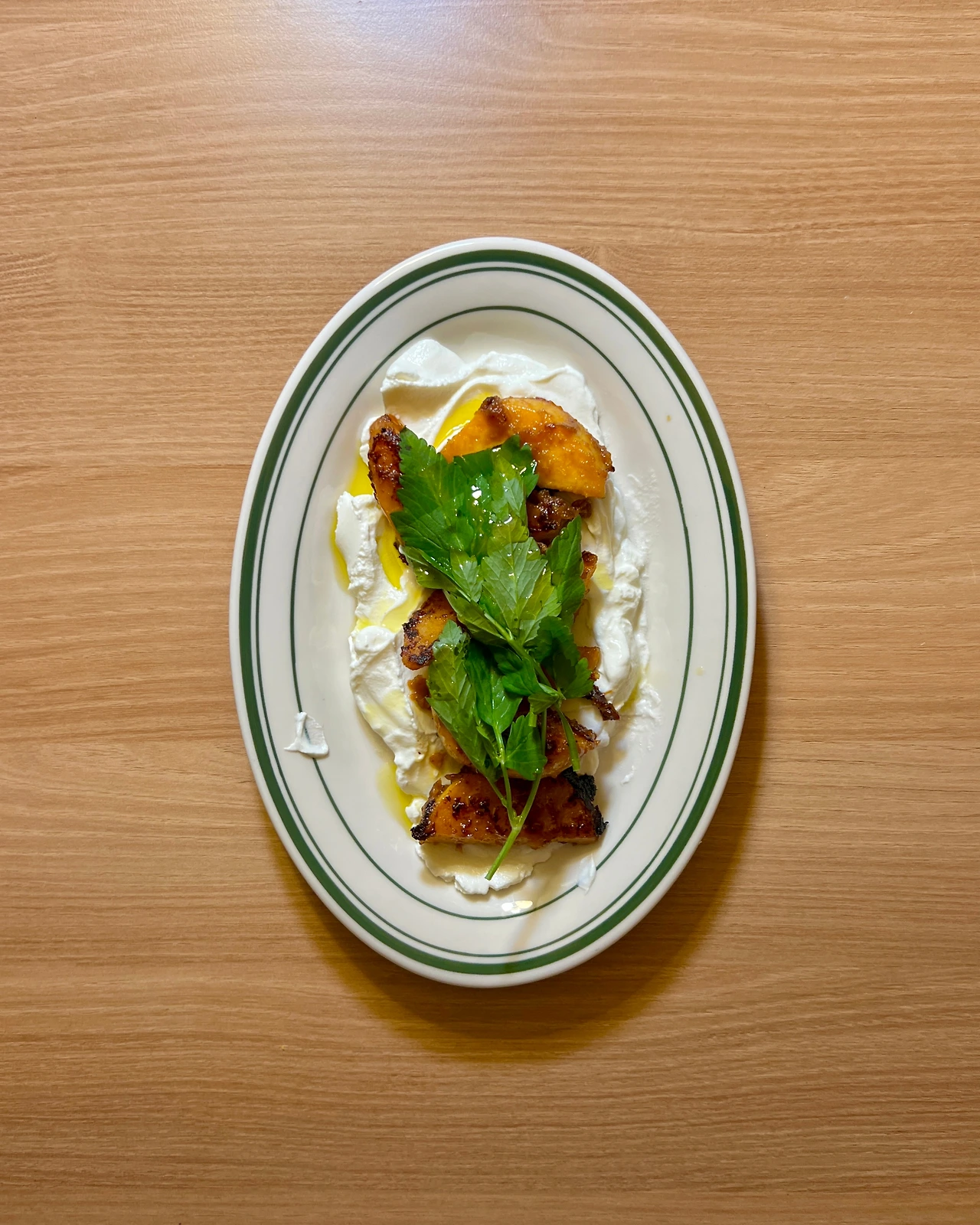 4. 접시에 그릭요거트 담고 땅콩호박과 미나리 얹는다.