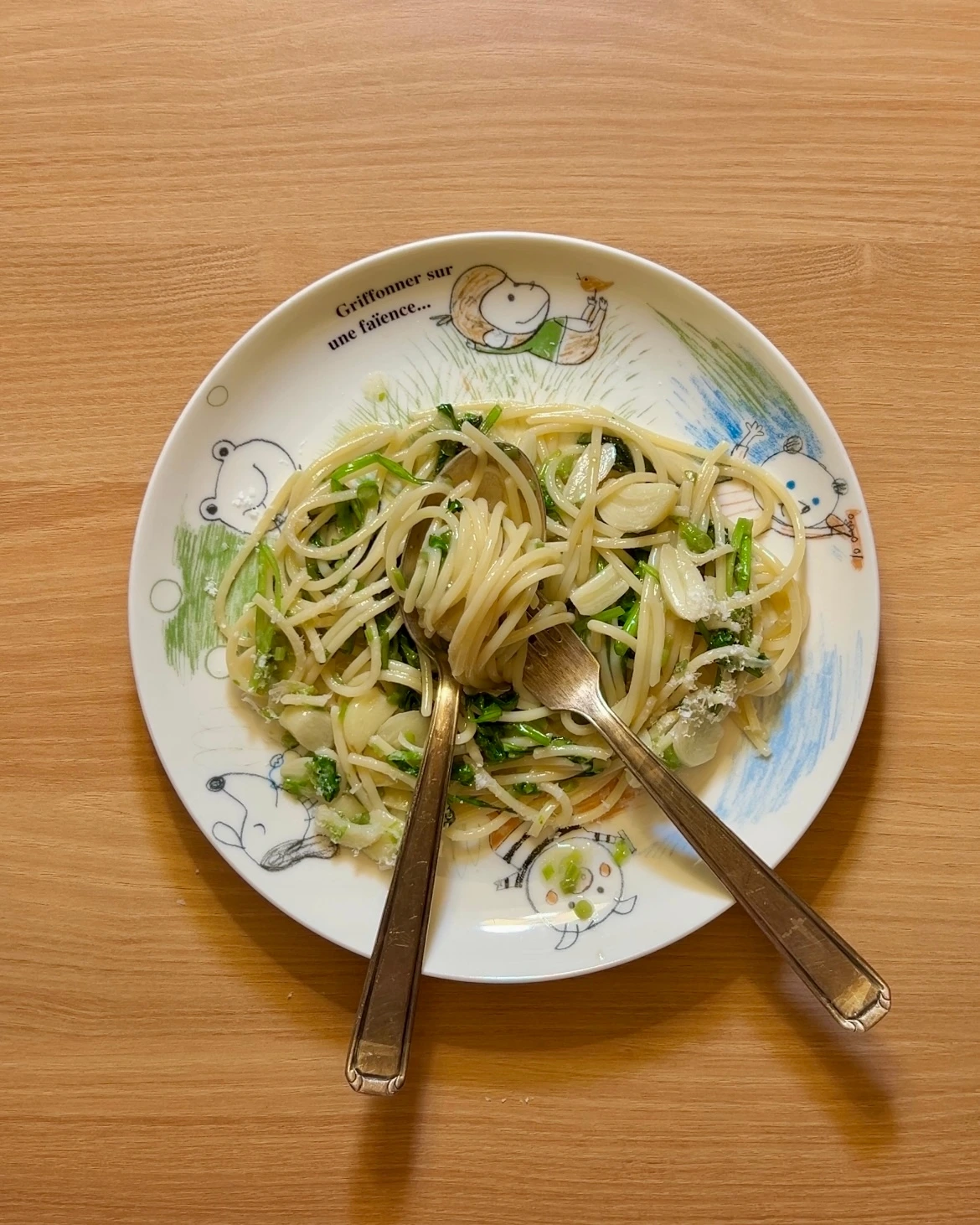 파스타 1인분, 미나리 많이, 참치액 1T, 파마산 치즈 1T