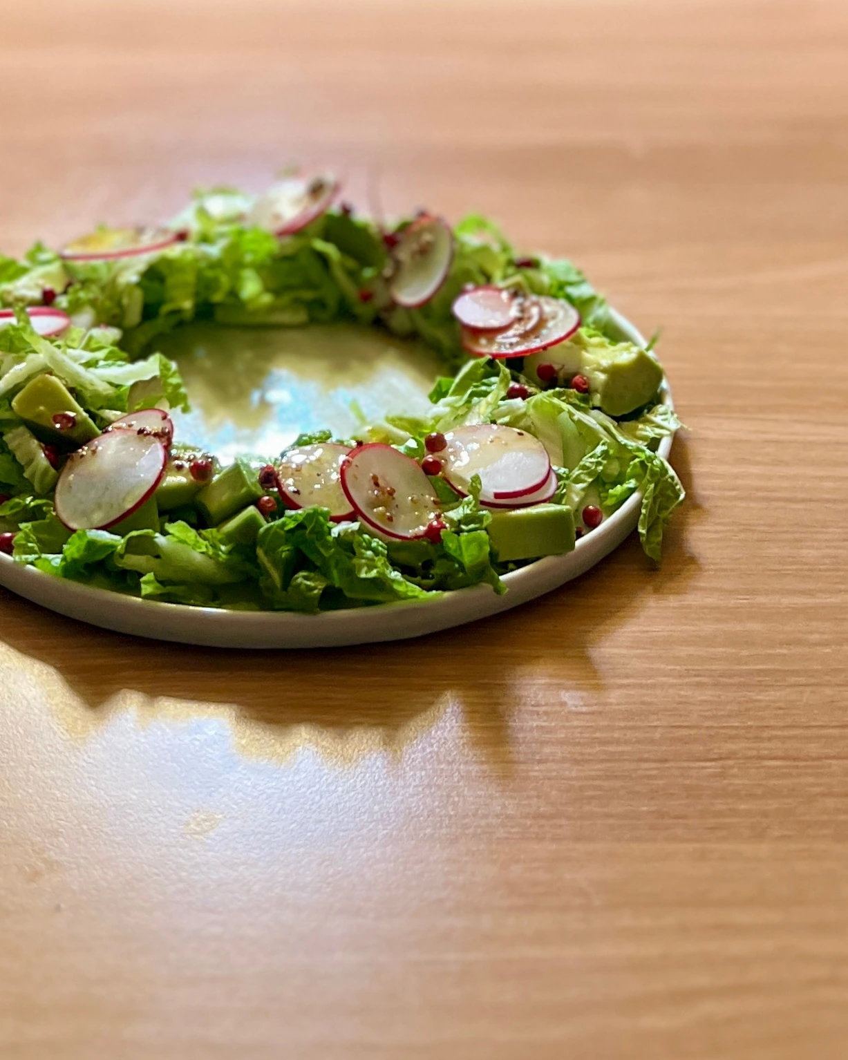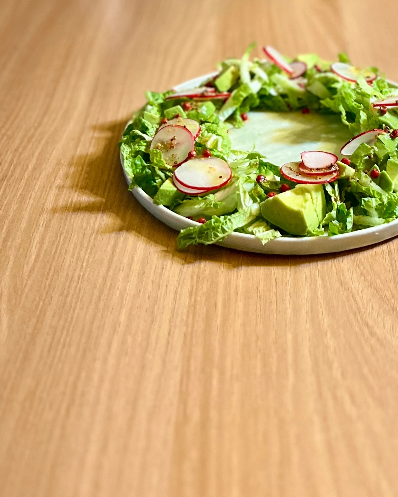 크리스마스니까 리스 모양 샐러드로 기분을 낸다. 봄동, 아보카도, 래디시로 만든 약 350kcal #리스샐러드