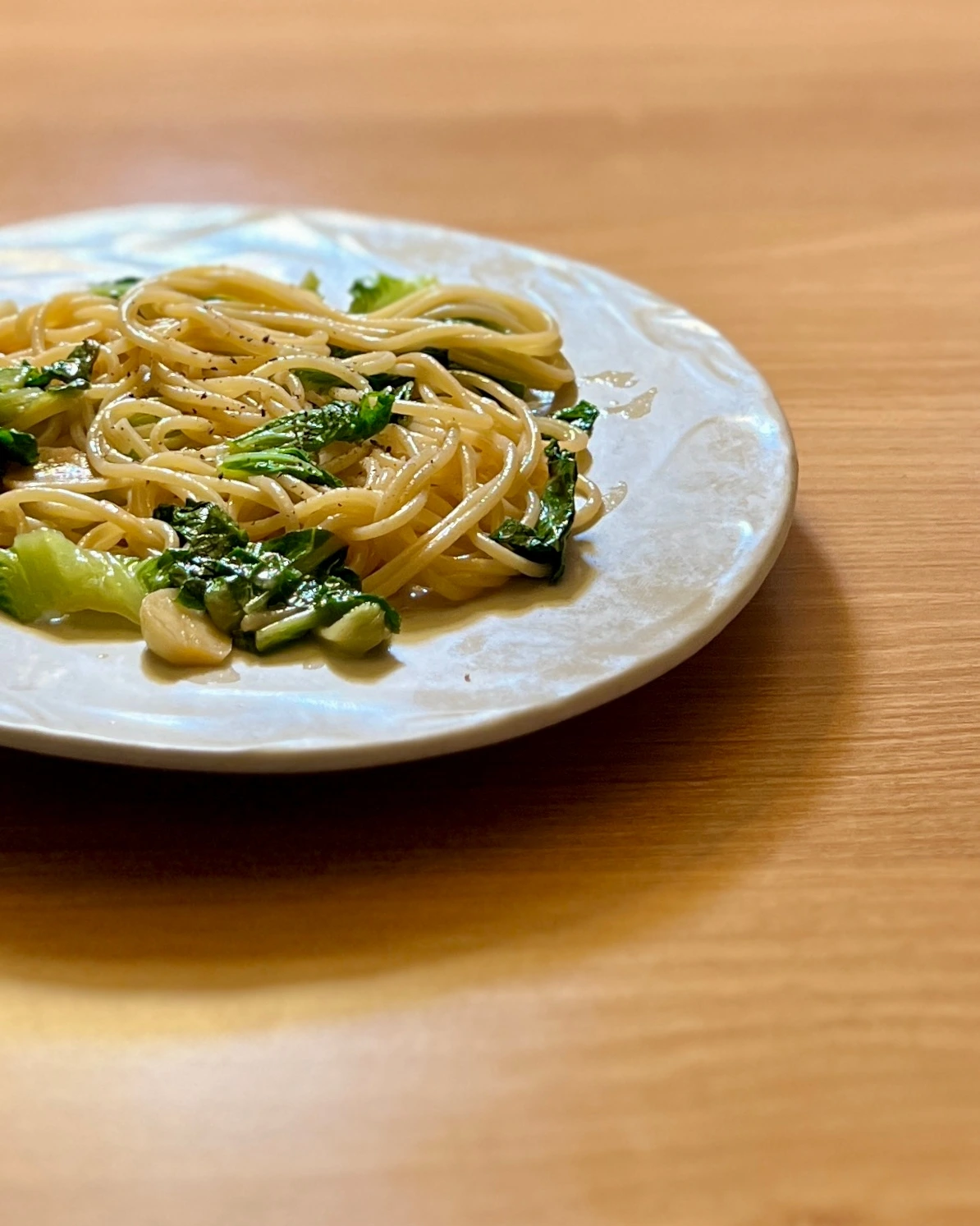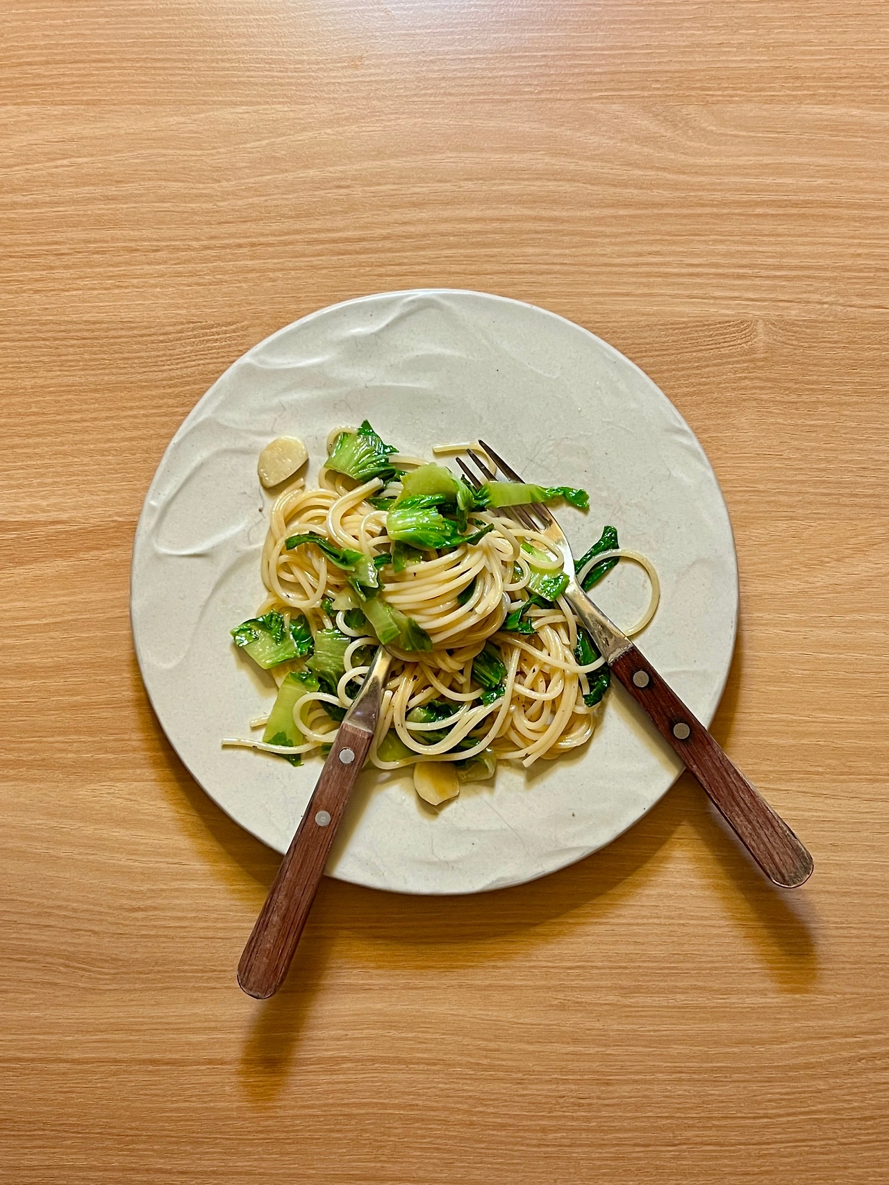 영하 13도, 하반기 들어 제일 추운 날에 봄동 파스타를 먹으면서, 따끈따끈한 봄볕이 반쯤 드리워진 야외에 앉아 있는 상상을 했다. 약 450kcal 봄동 파스타