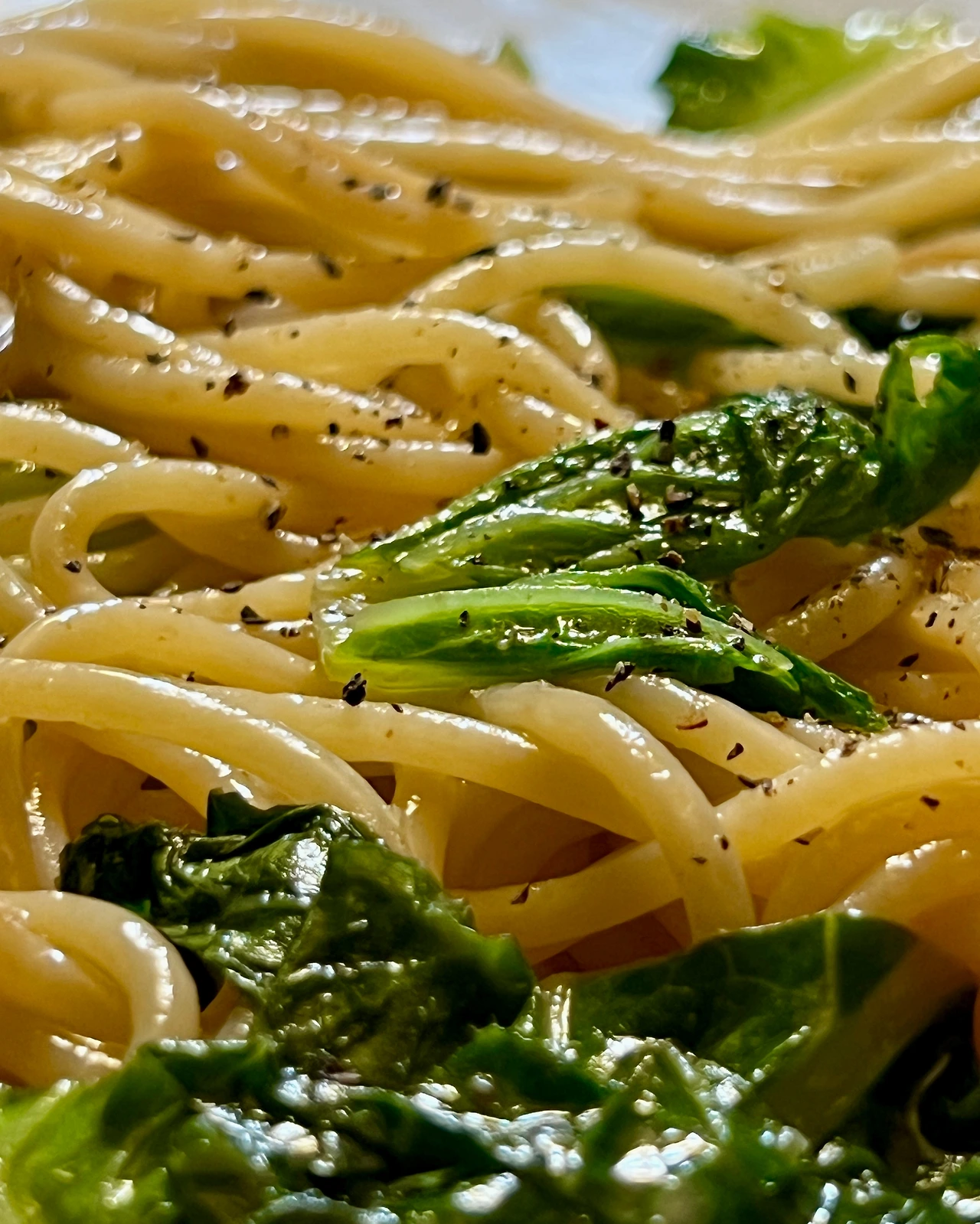 작은 봄동 1개, 스파게티 1인분, 앤초비 페이스트 1T, 올리브오일, 후추