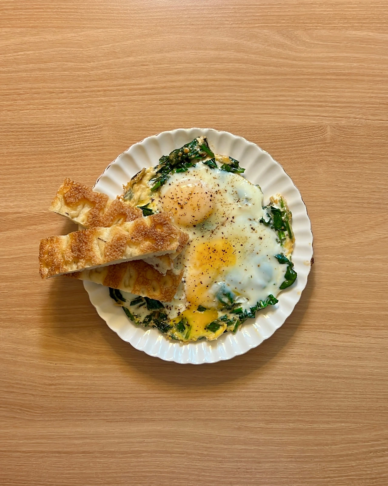 포카치아에 얹어 먹는 450kcal 시금치 계란