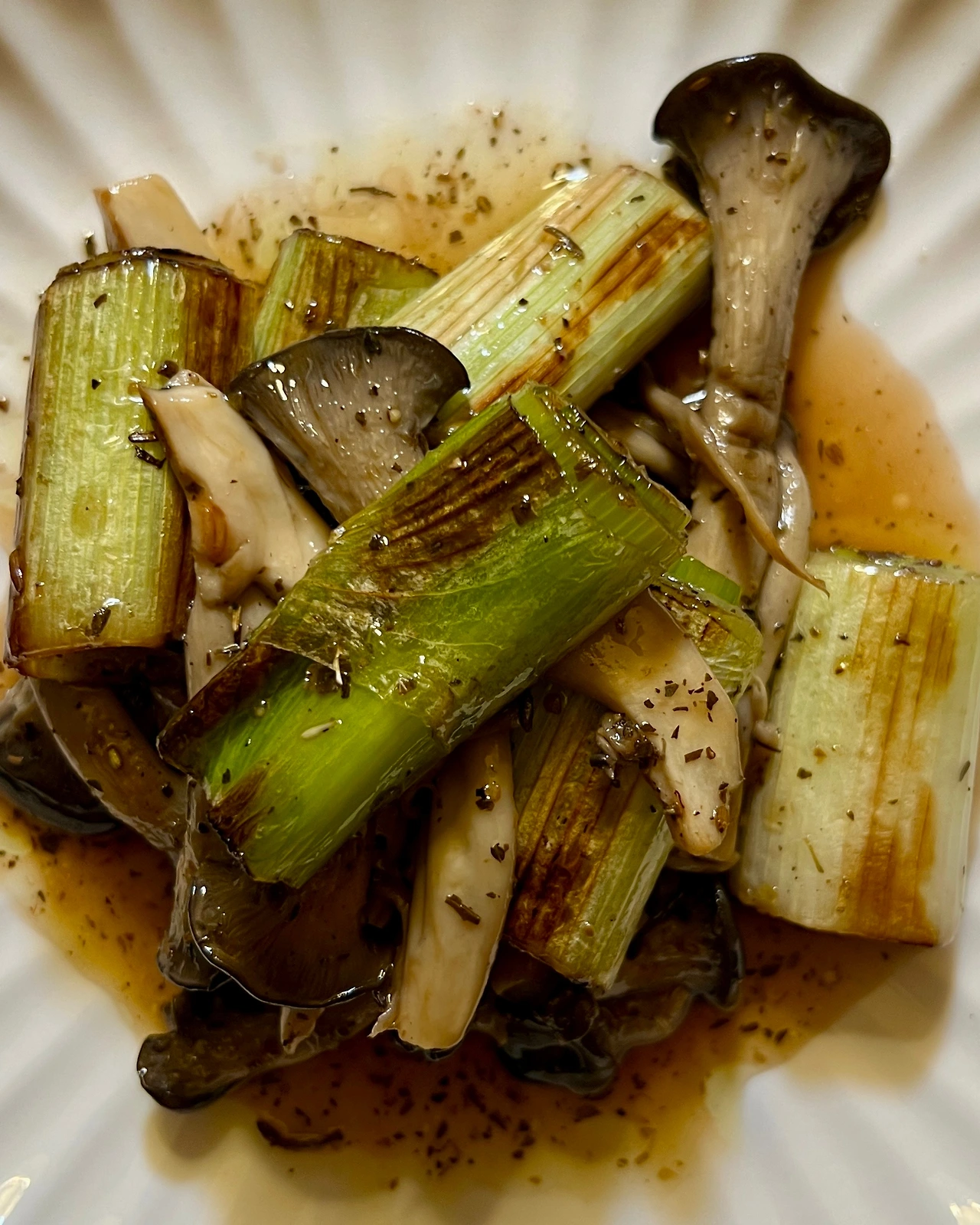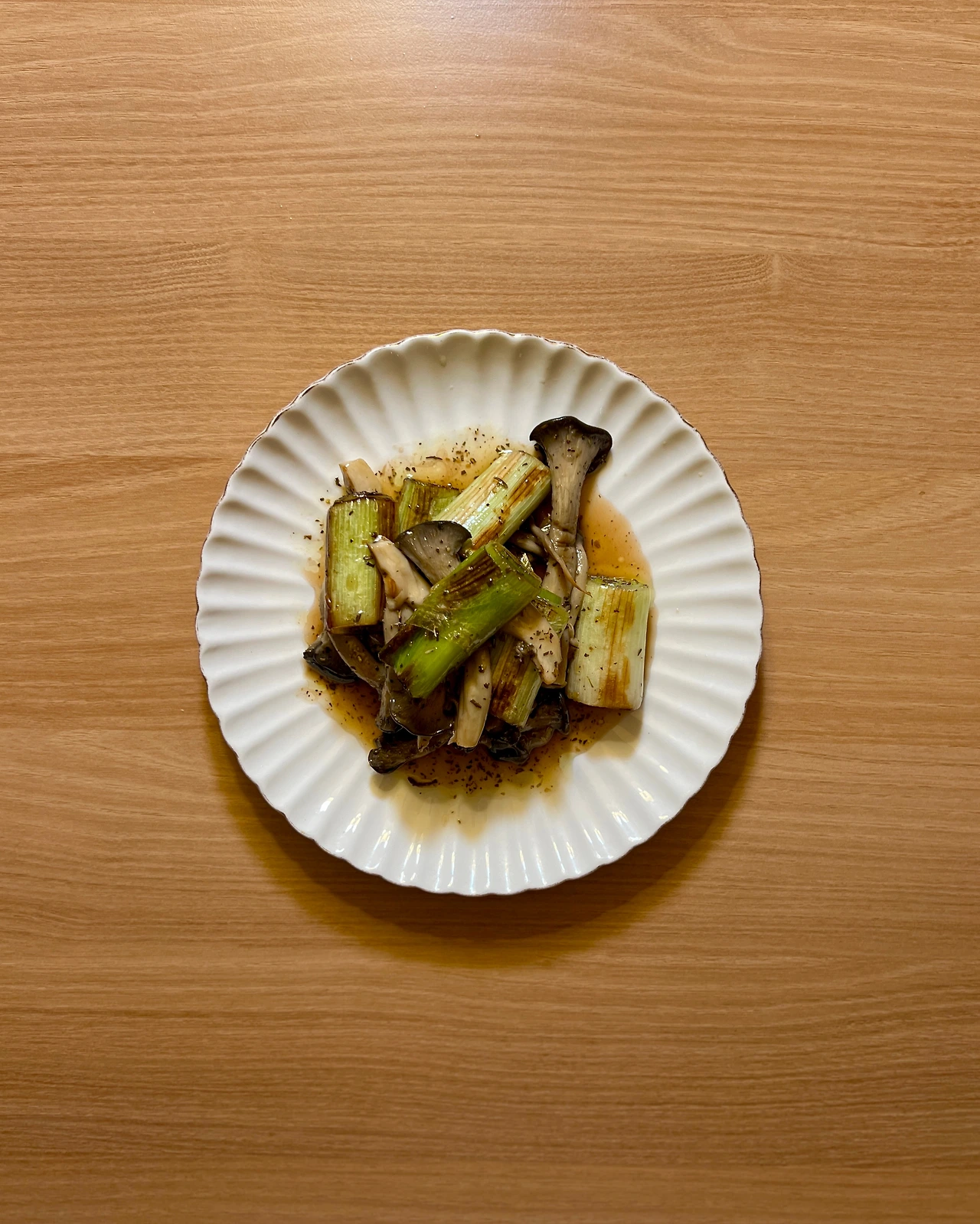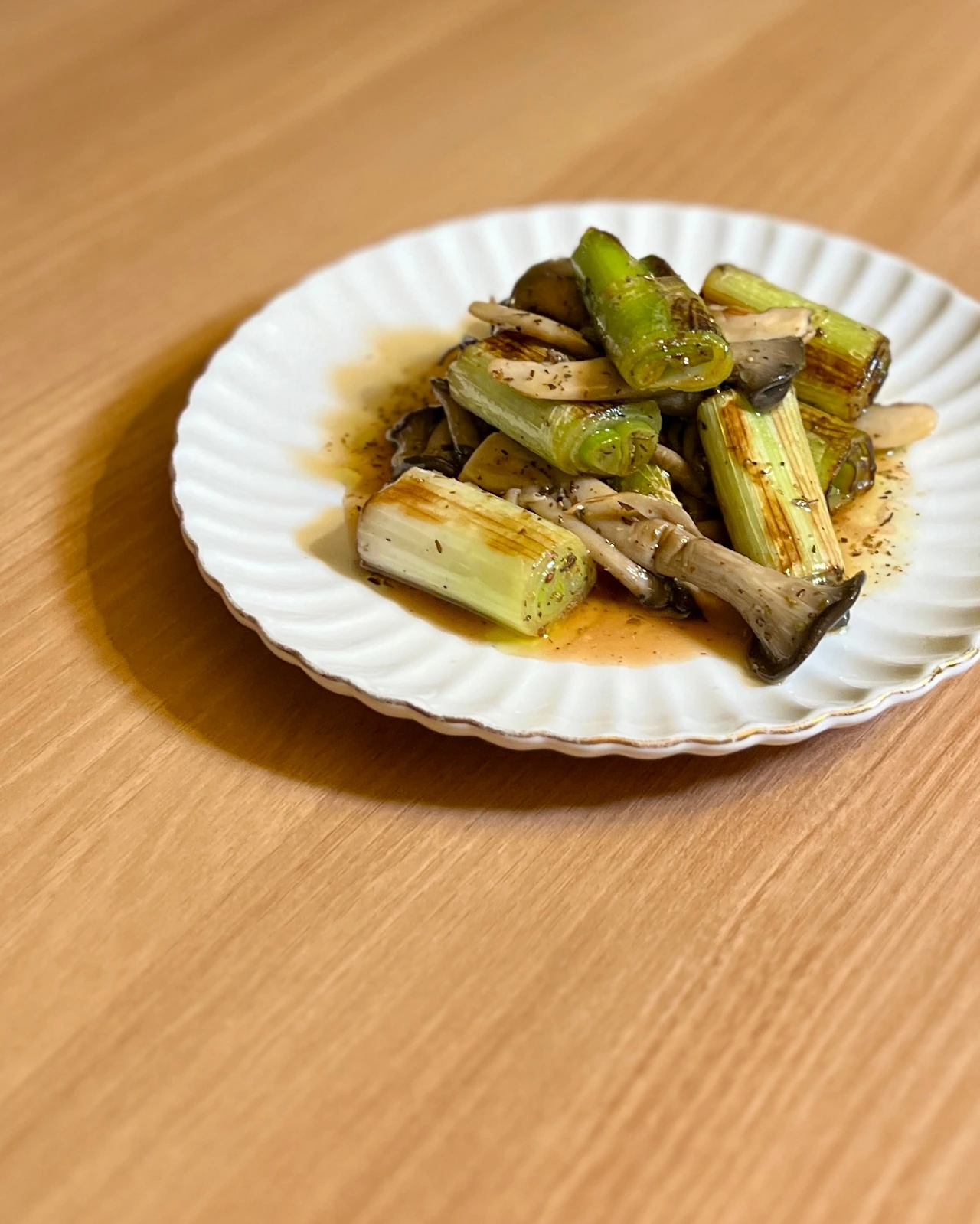 느타리버섯 50g, 대파 2개(인데 잎집만), (드레싱) 올리브오일과 레드와인 비니거 1:1 비율 넣고 꿀 1t