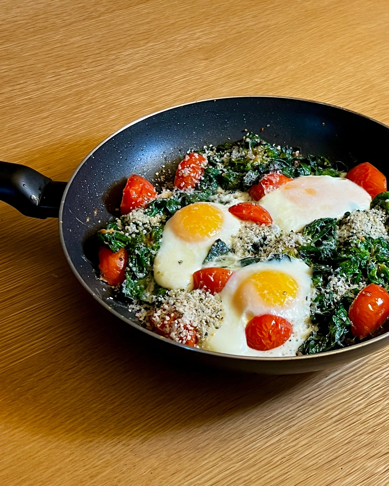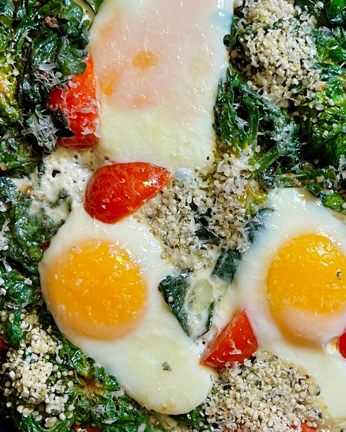 870kcal 햄프시드를 넣은 에그 인 시금치