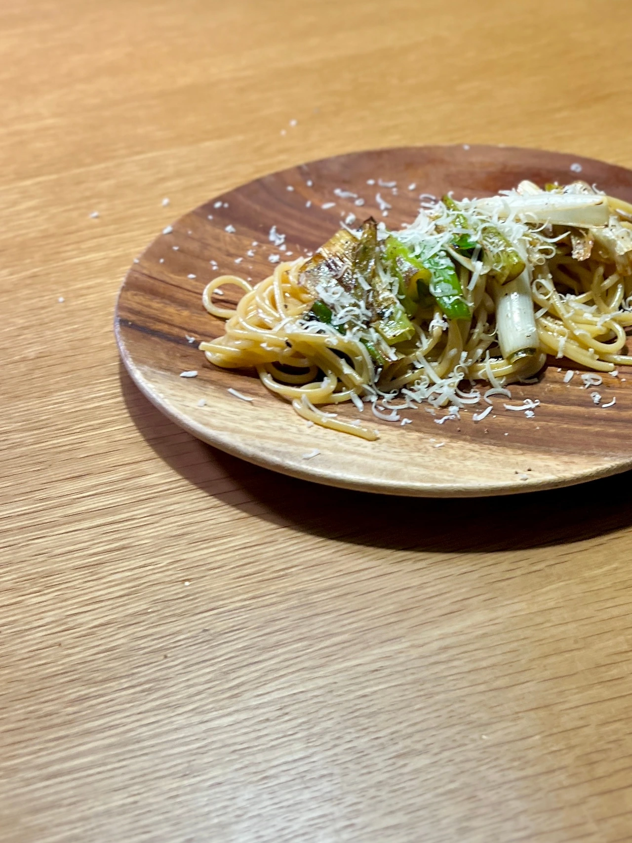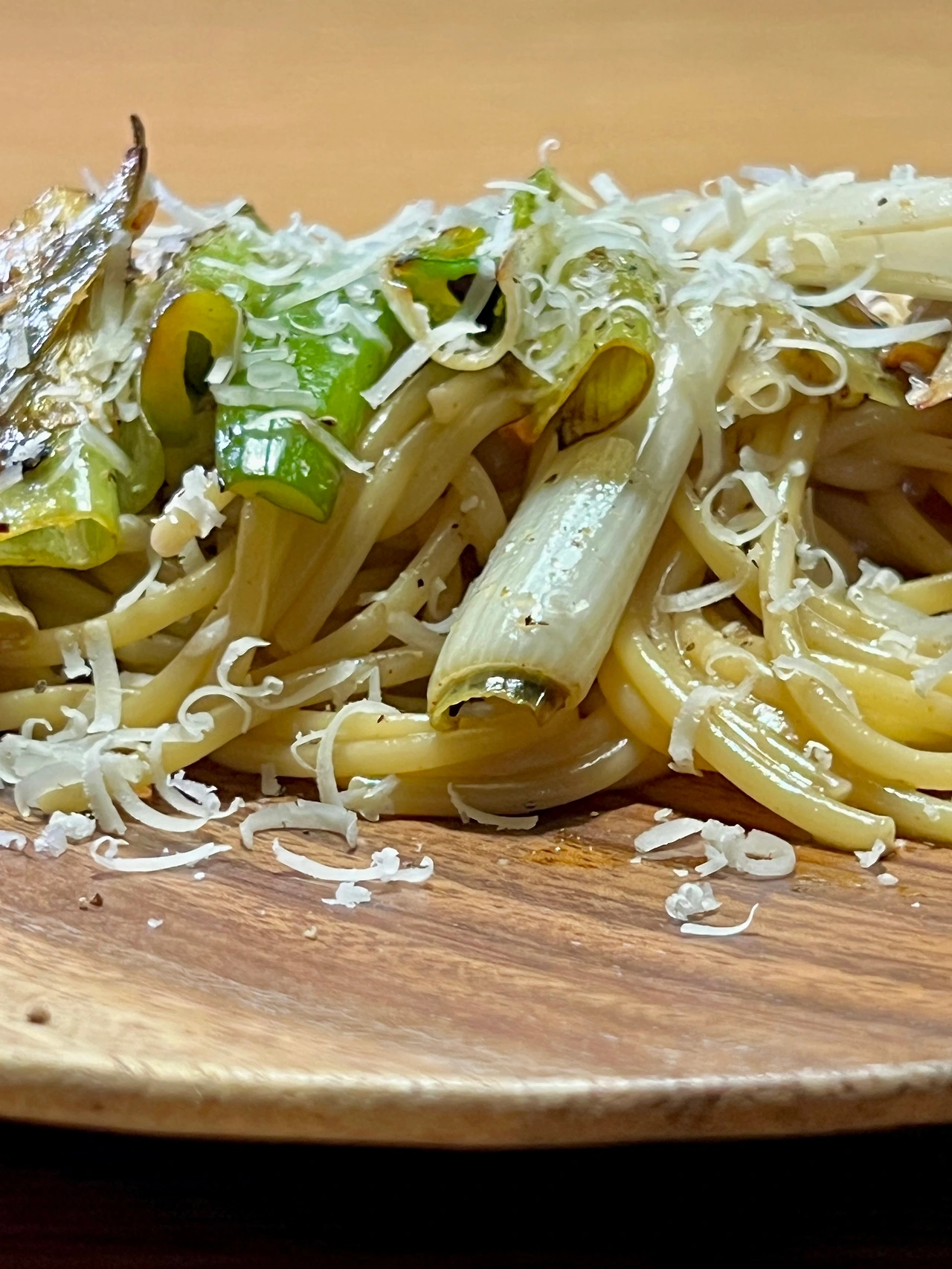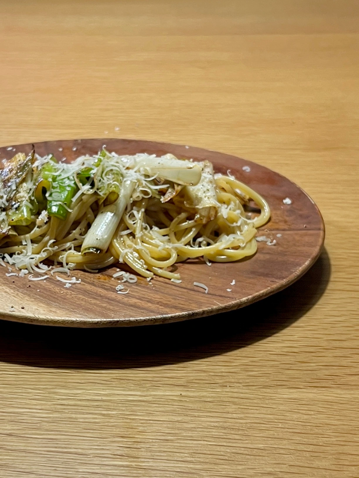 파스타(스파게티) 1인분, 대파 1개(잎집만 사용), 마늘 2개, 레드페퍼 플레이크 조금, 참치액젓 1T, 그라나파다노 치즈 조금