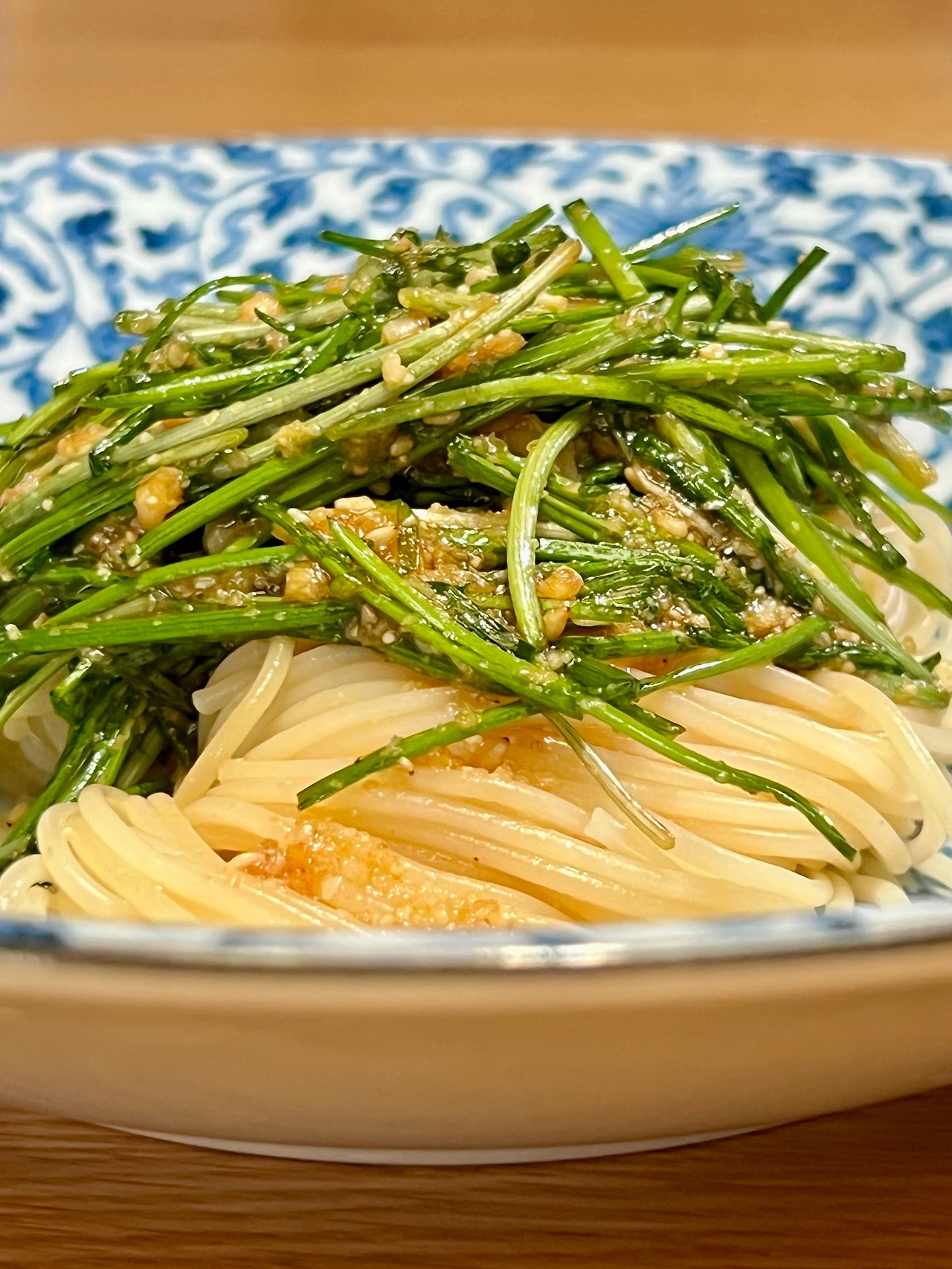 카펠리니 1인분, 달래 한 줌, 간장 2T, 들기름 3T, 매실액 1T, 통깨 1T, 마늘 1개