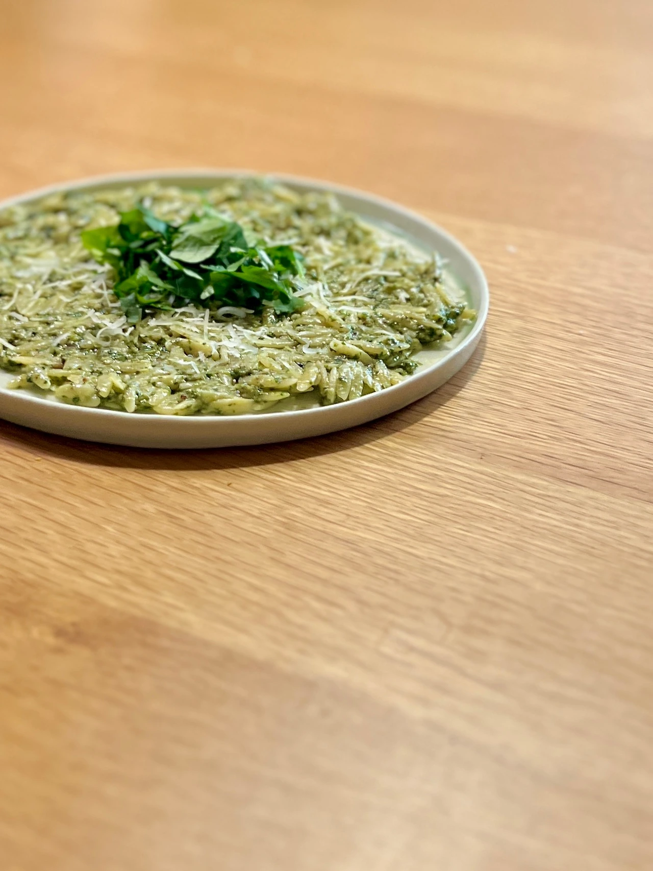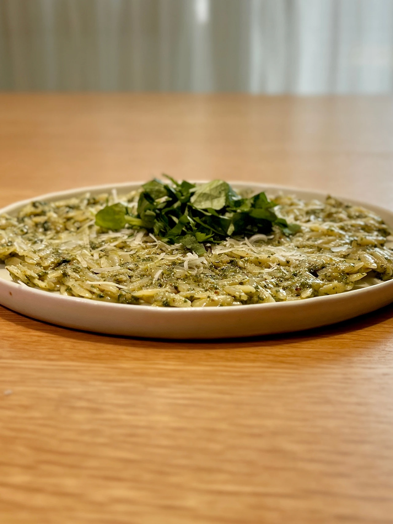 오르조 2컵, (참나물 페스토) 참나물 50g, 호두 20g, 마늘 1개, 소금과 후추 한 꼬집, 파마산치즈 20g과 올리브오일 1/3컵