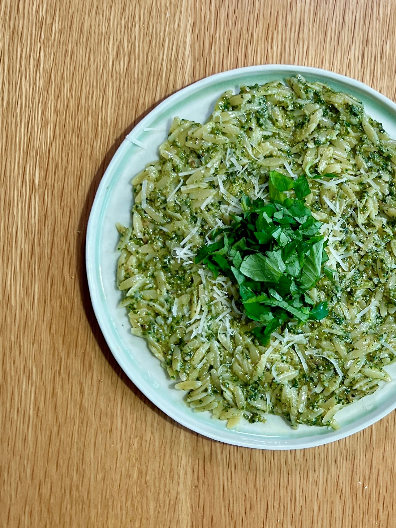 어제 참나물 두부 처트니를 만들고 남은 참나물로 페스토를 만들어, 1인분 약 650kcal 참나물 페스토 오르조