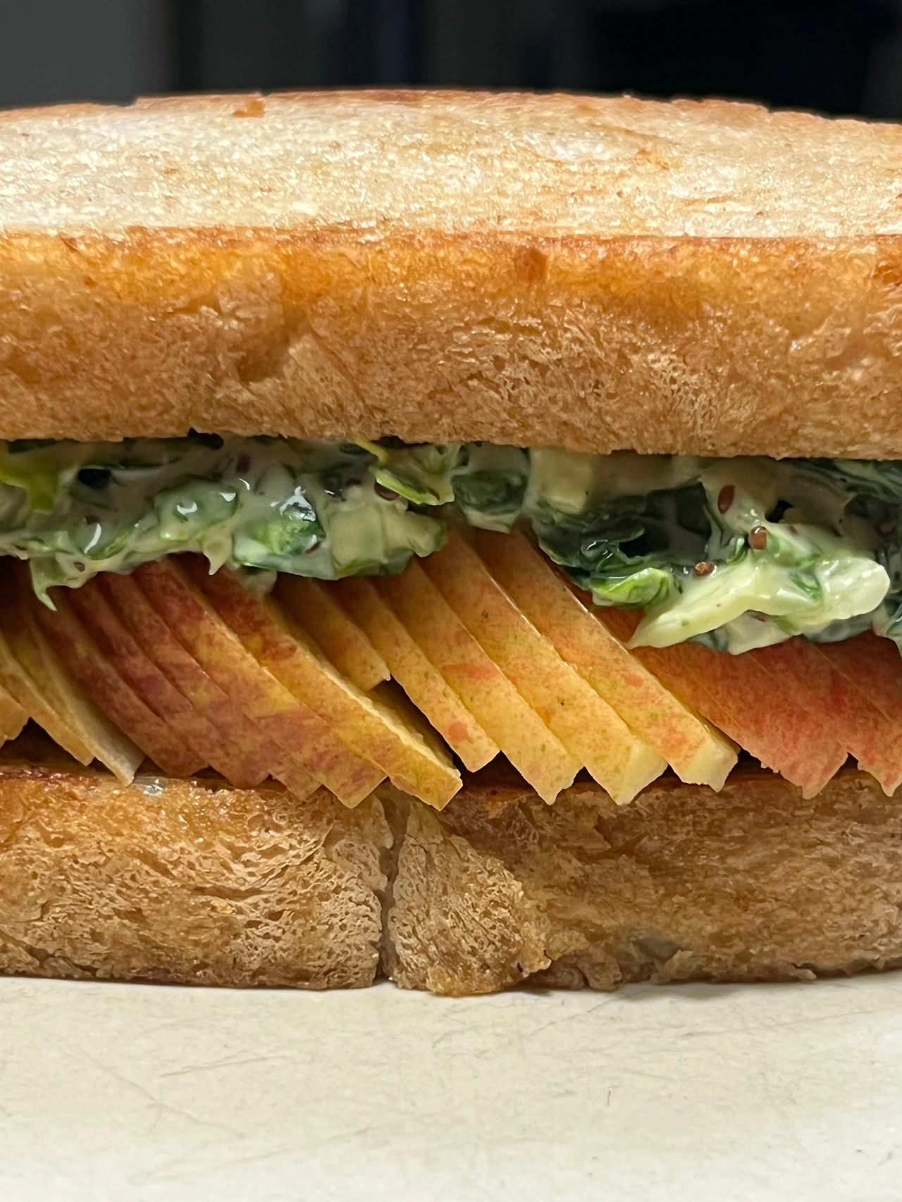 무한봄동천국의 마지막 메뉴, 약 417kcal 봄동 사과 샌드위치 Spring Cabbage Apple Rye Sandwich
