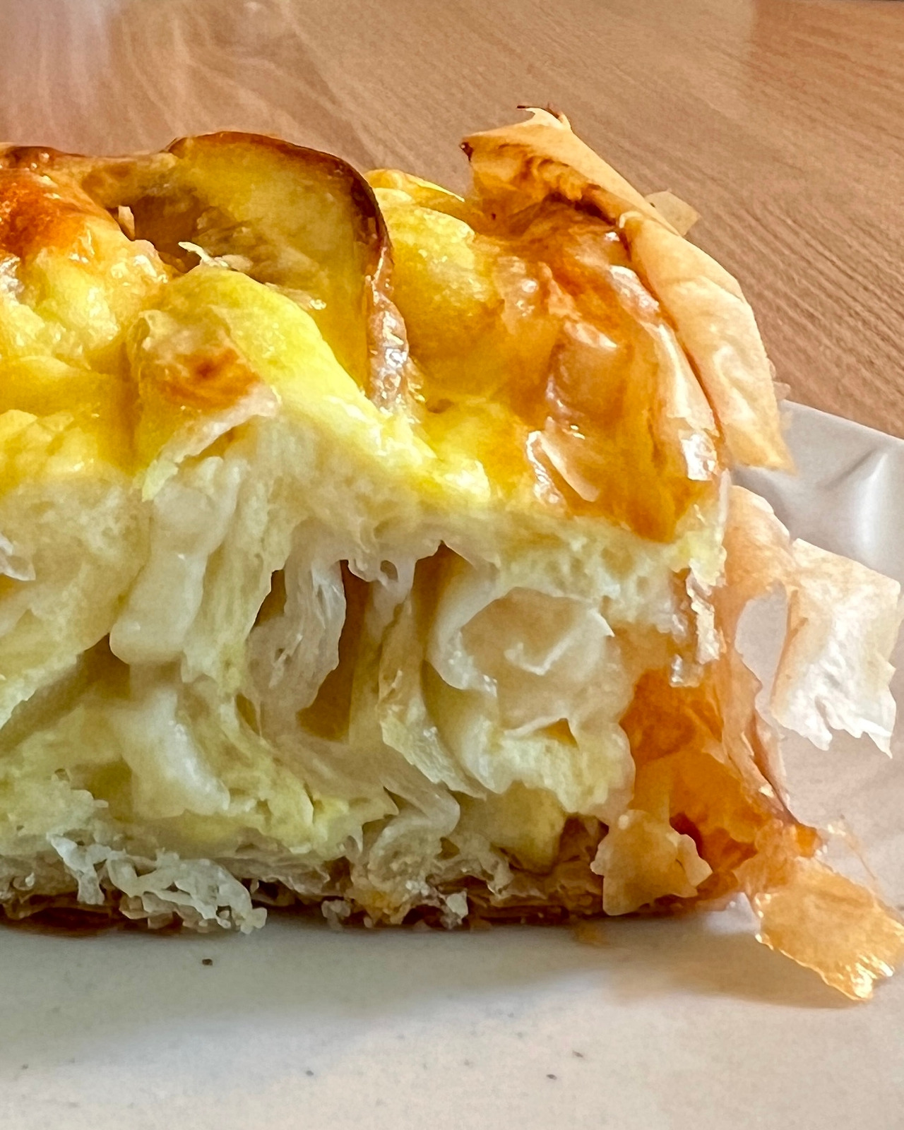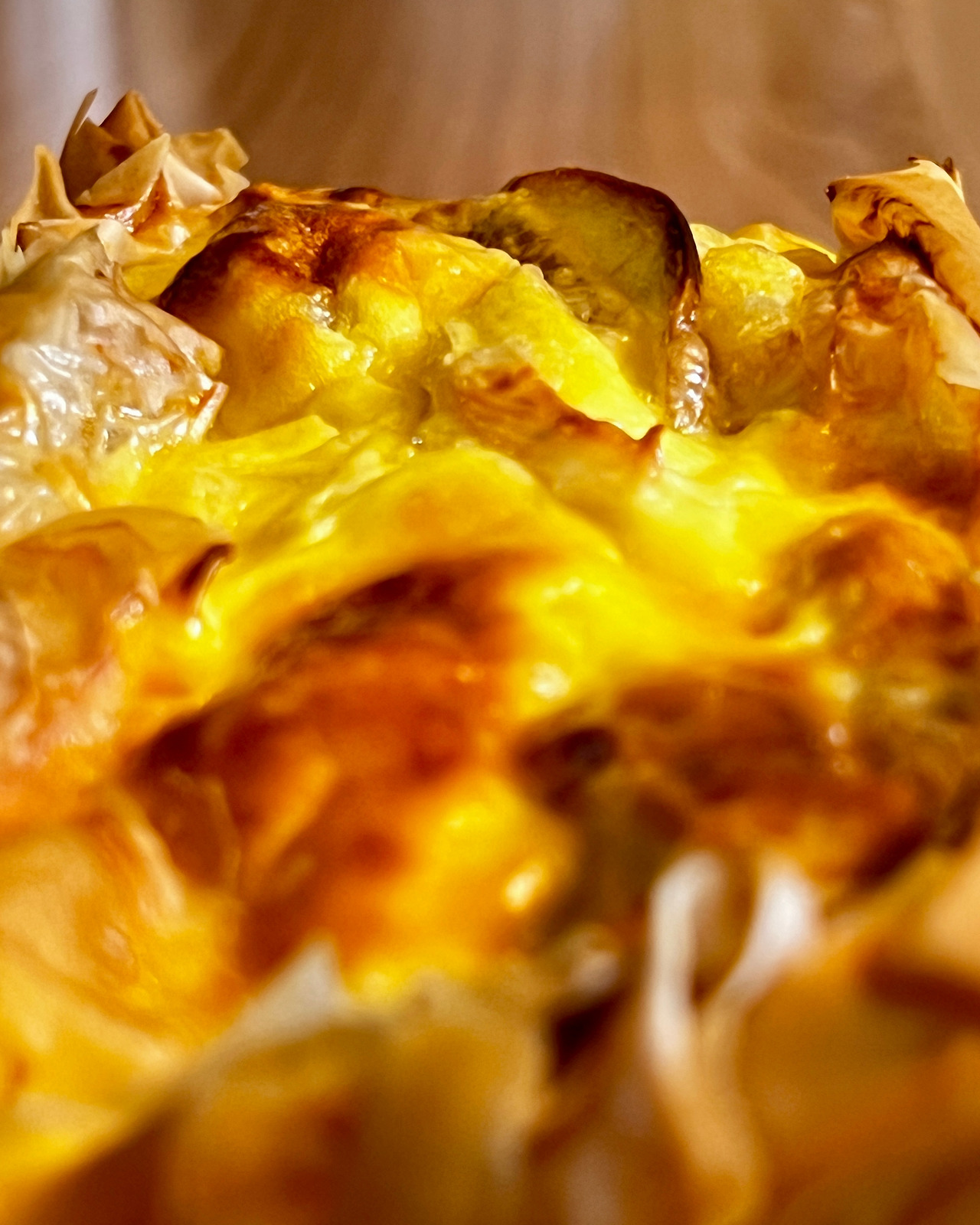 3. 그릇에 그릭요거트 2T와 계란 1개 섞어서 필로도우 위에 붓고 180도 오븐에 30분 굽는다.