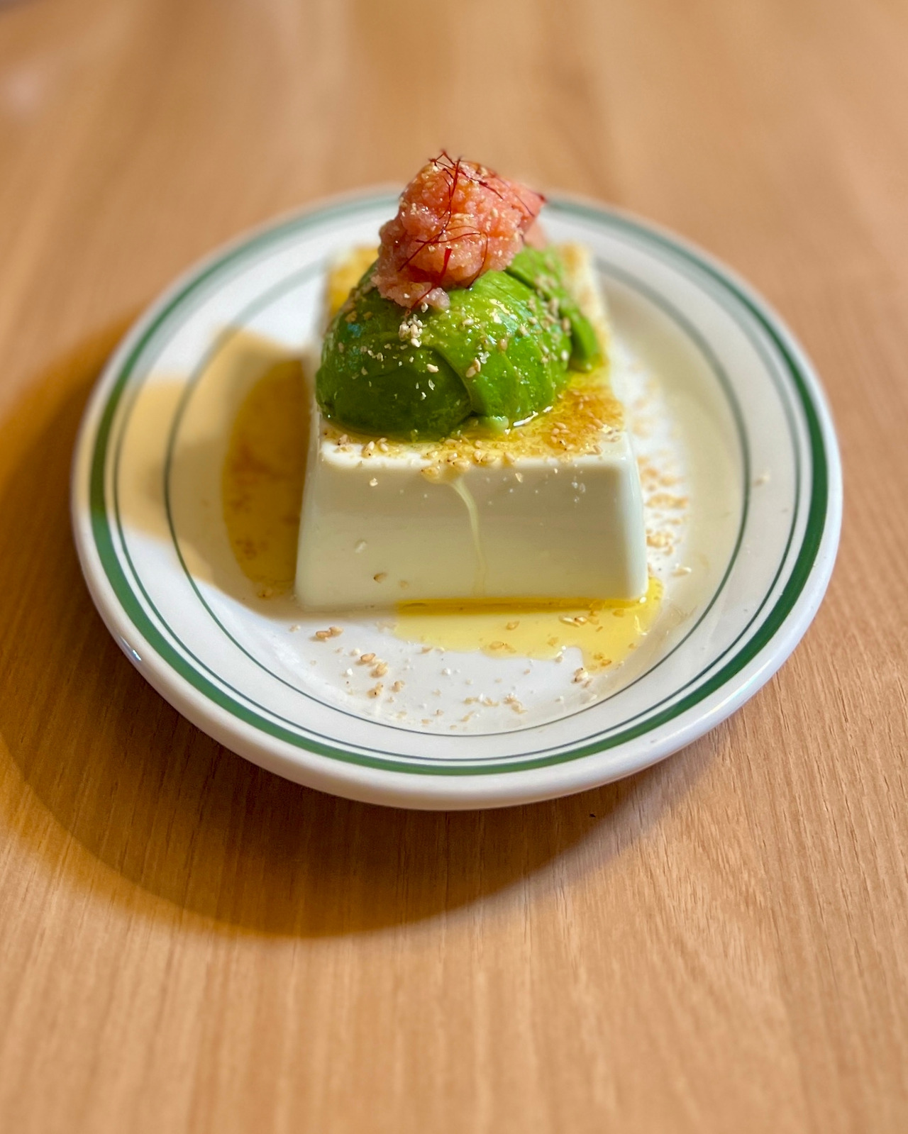 2. 잘 익은 아보카도 1/2개 잘라서 전두부 위에 얹는다.
