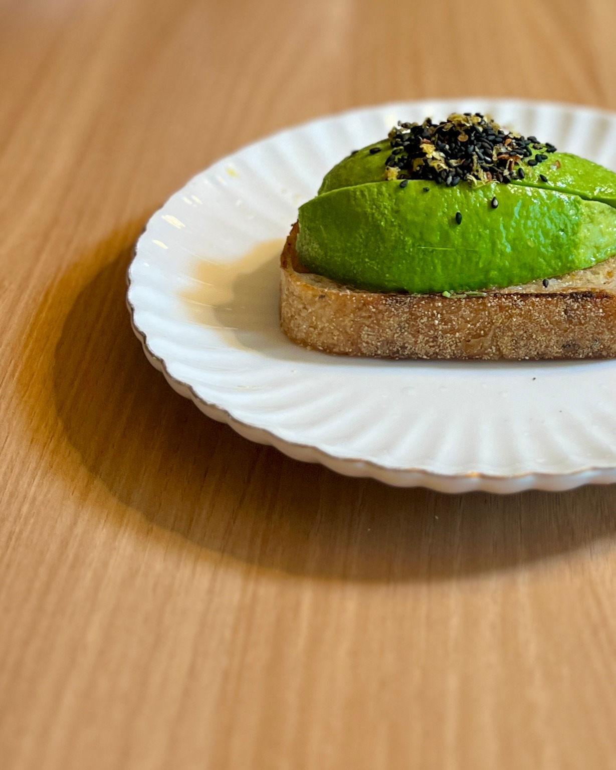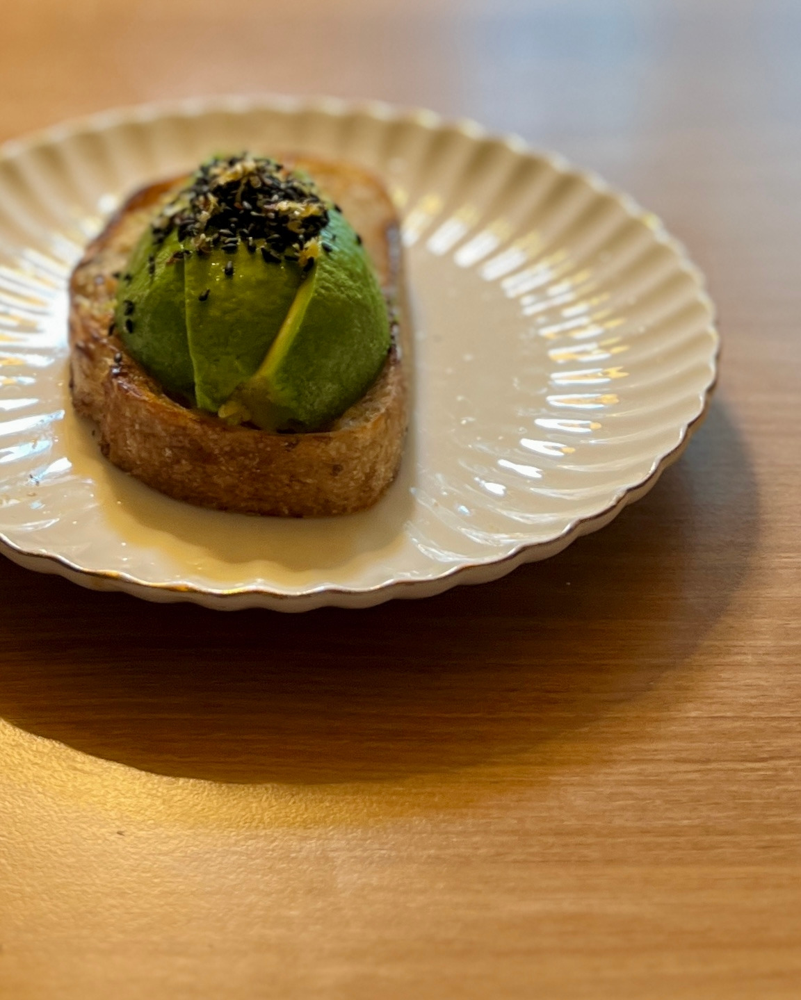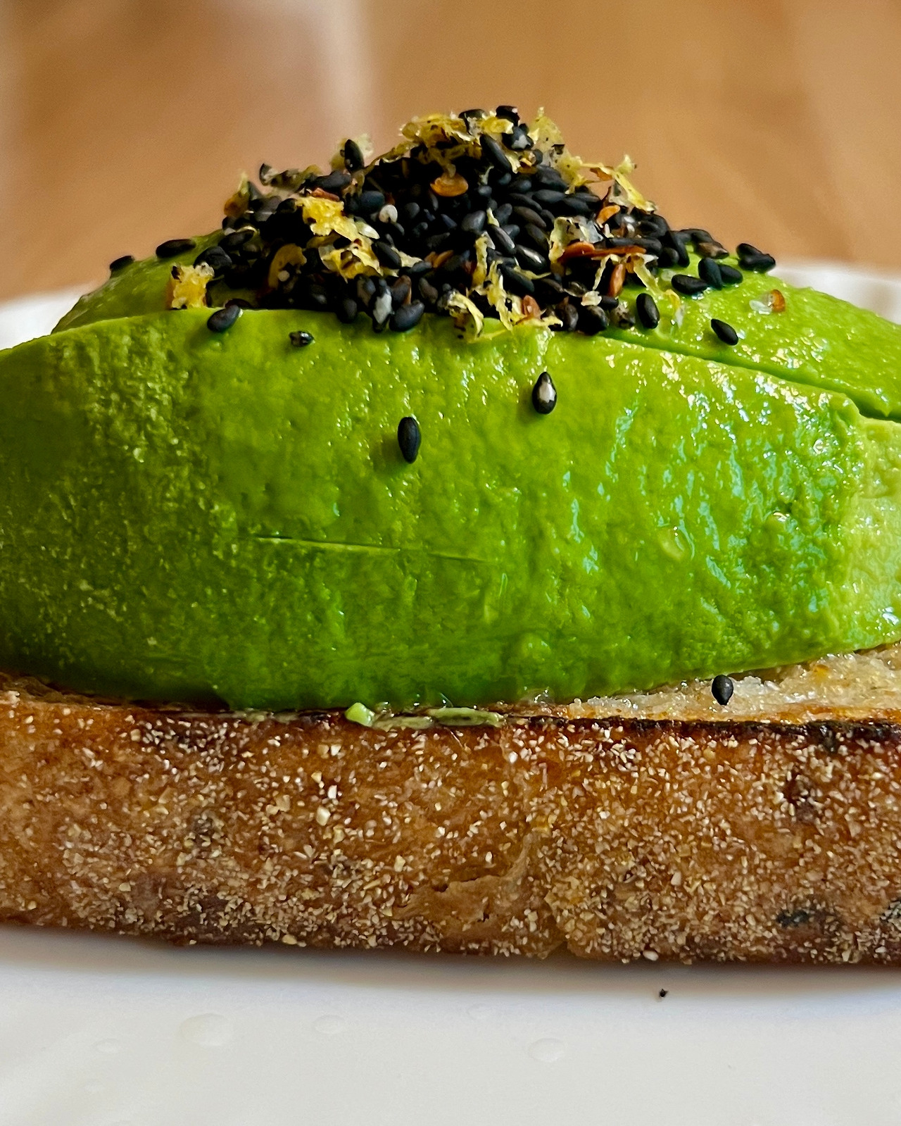 4. 사워도우에 아보카도 얹고 레몬주스 흠뻑, 그 위에 1의 흑임자 레몬 칠리 시즈닝 얹는다.