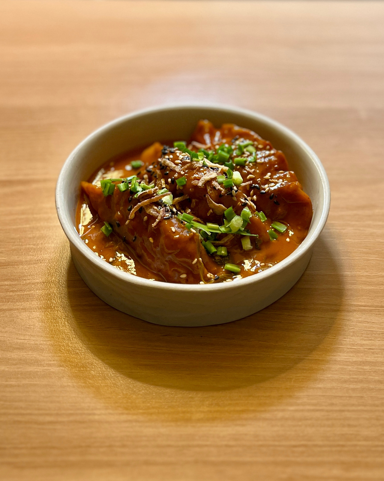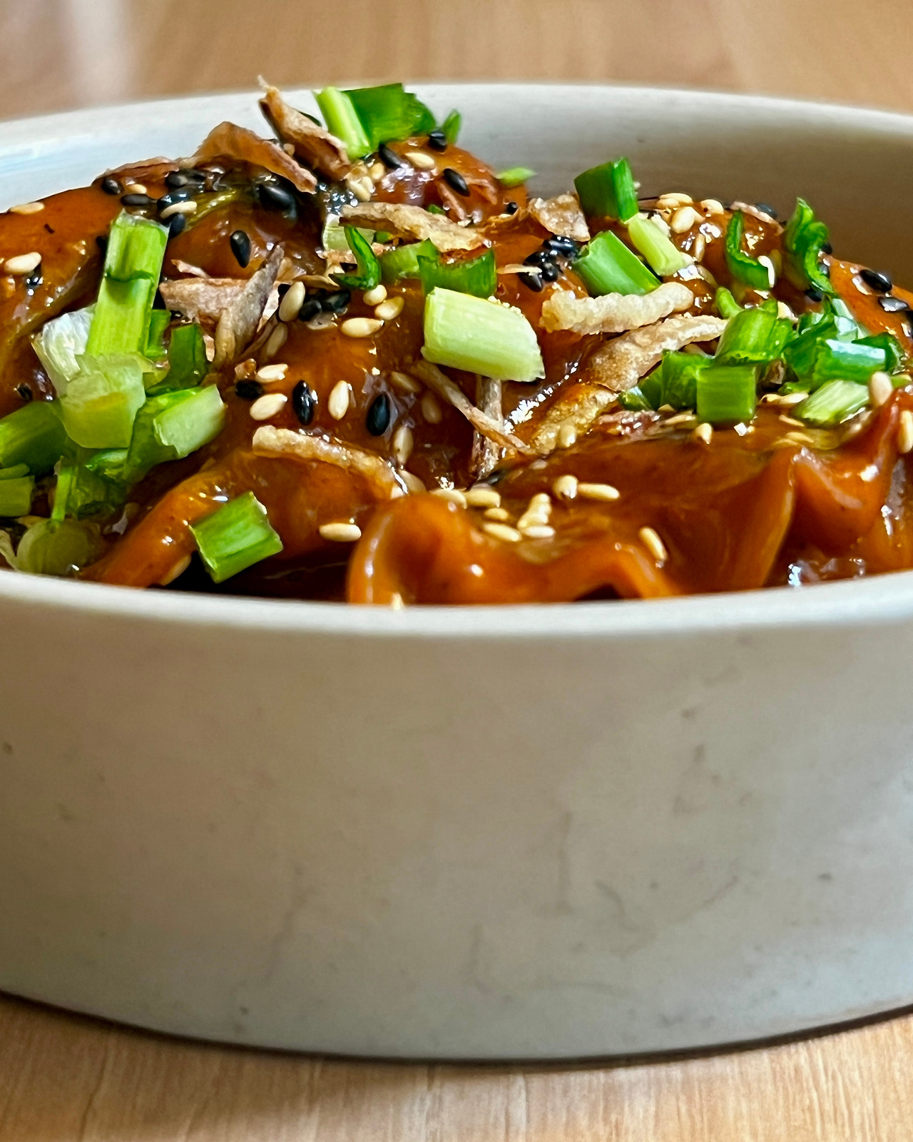 소스에 칠리 페이스트, 토마토소스, 고추장, 간장, 미소, 식초와 코코넛밀크가 들어갔는데 만들기 전엔 코코넛밀크와 고추장 섞어서 잠깐 끓이면 비슷한 맛을 낼 수 있겠거니 생각했다. 하지만 맛을 보니 시간과 재료를 필요로 하는 데는 다 이유가 있구나 싶었다.