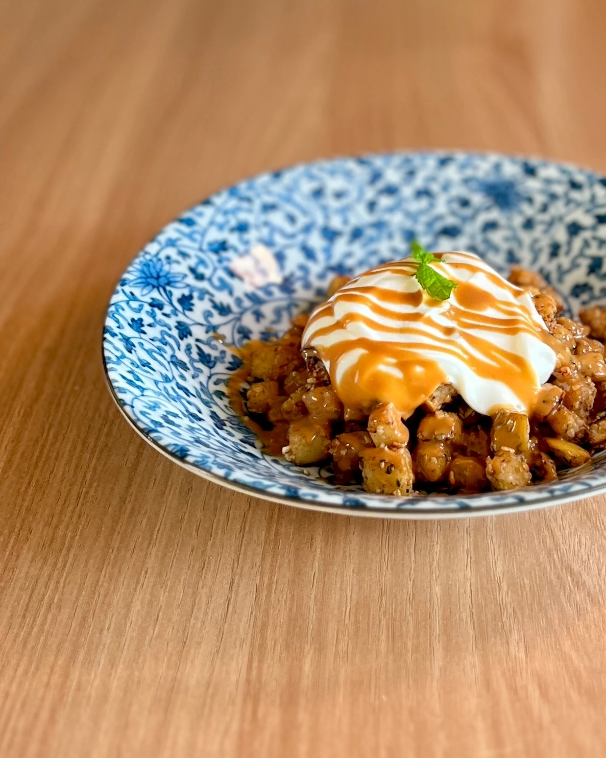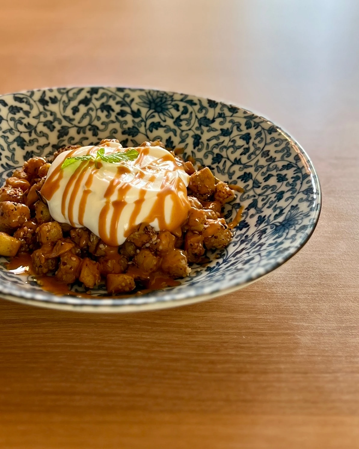 급하게 만들다 보니 (겉보기엔) 당이 폭발할 것 같은 비주얼이 되었지만 보기와 달리 당은 적절한 편이다. 대체로 균형 잡힌 한 끼라고 할 수 있을, 그릭요거트를 곁들인 350kcal 사과 크리스프