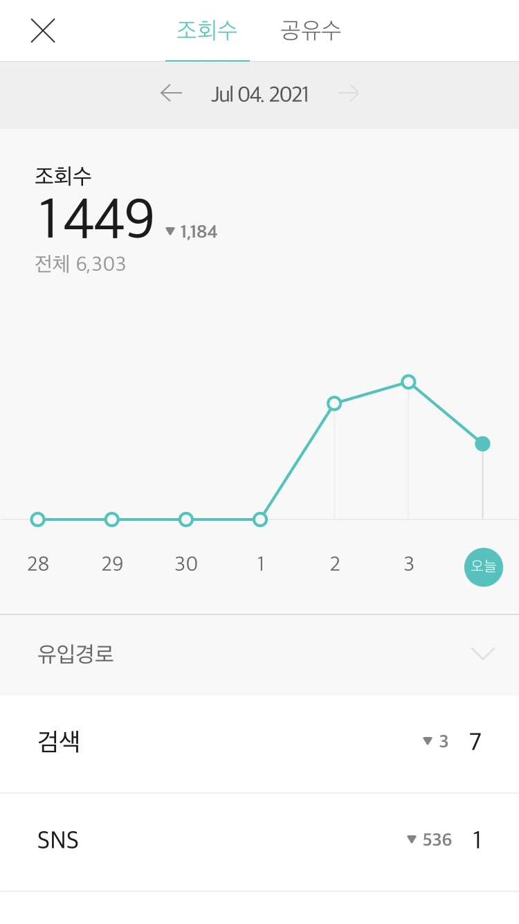 조회수 올라가기 시작할 때 캡처한 사진들. 제가 쓴 글은 <다시 책장을 들이기까지>라는 글이었어요. 거실에 책장을 들였다가, 다시 없앴다가, 또다시 들이게 된 스토리를 담아봤지요. :)