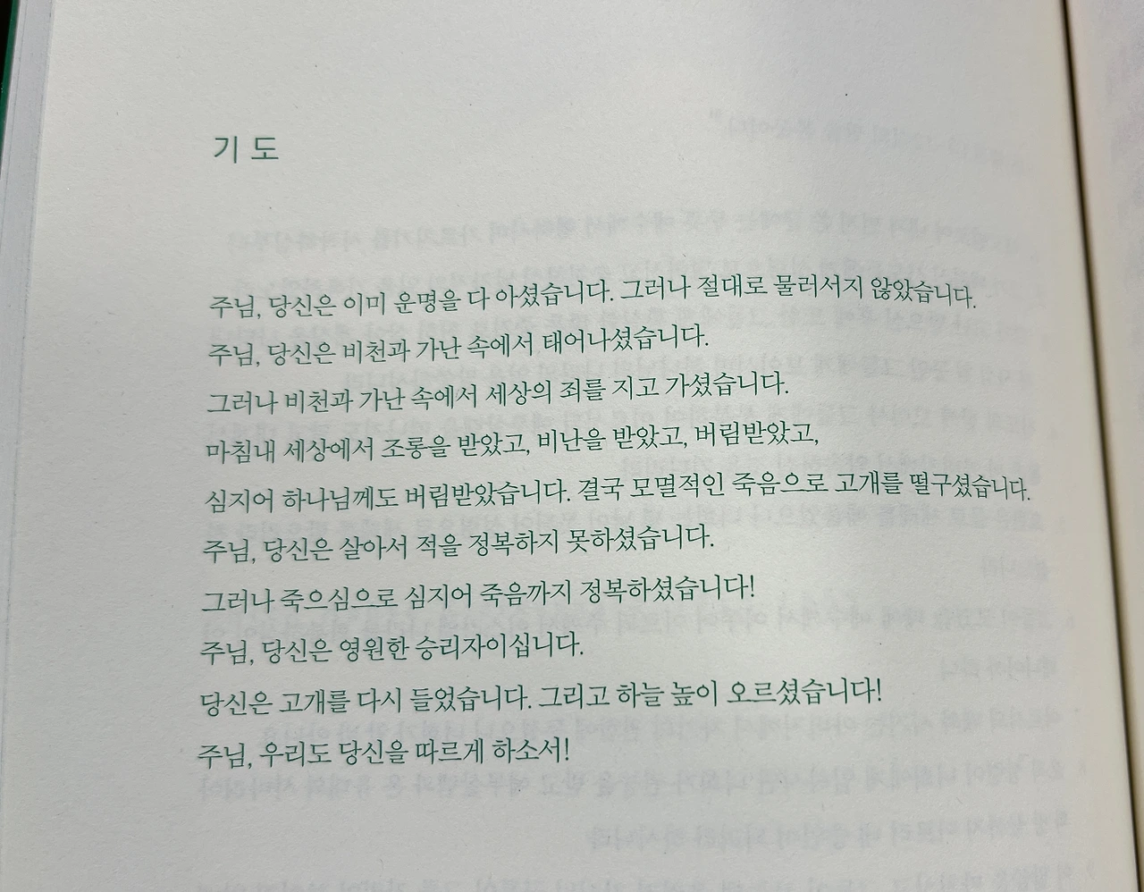 그리스도인이라고 칭하는 이에게조차 십자가의 길은 낯설고 당혹스러운 길이다. 그 길을 찾는 이가 많을 리 없고, 인기가 있을 리 없다. 안락하고 반짝거리는 것을 좋아하는 나 같은 사람은 더욱 그렇다.그래도 자꾸 돌아간다. 십자가로 돌아간다. 십자가를 지실 수밖에 없었던 예수의 삶으로 돌아간다. 그리고 삶의 끝자락이라도 한 터럭이라도 그를 따르고 닮을 수 있기를 기도한다. 그렇게 간다, 매일 나에게는 실망하다가도 매일 십자가로 다시 일어서면서.