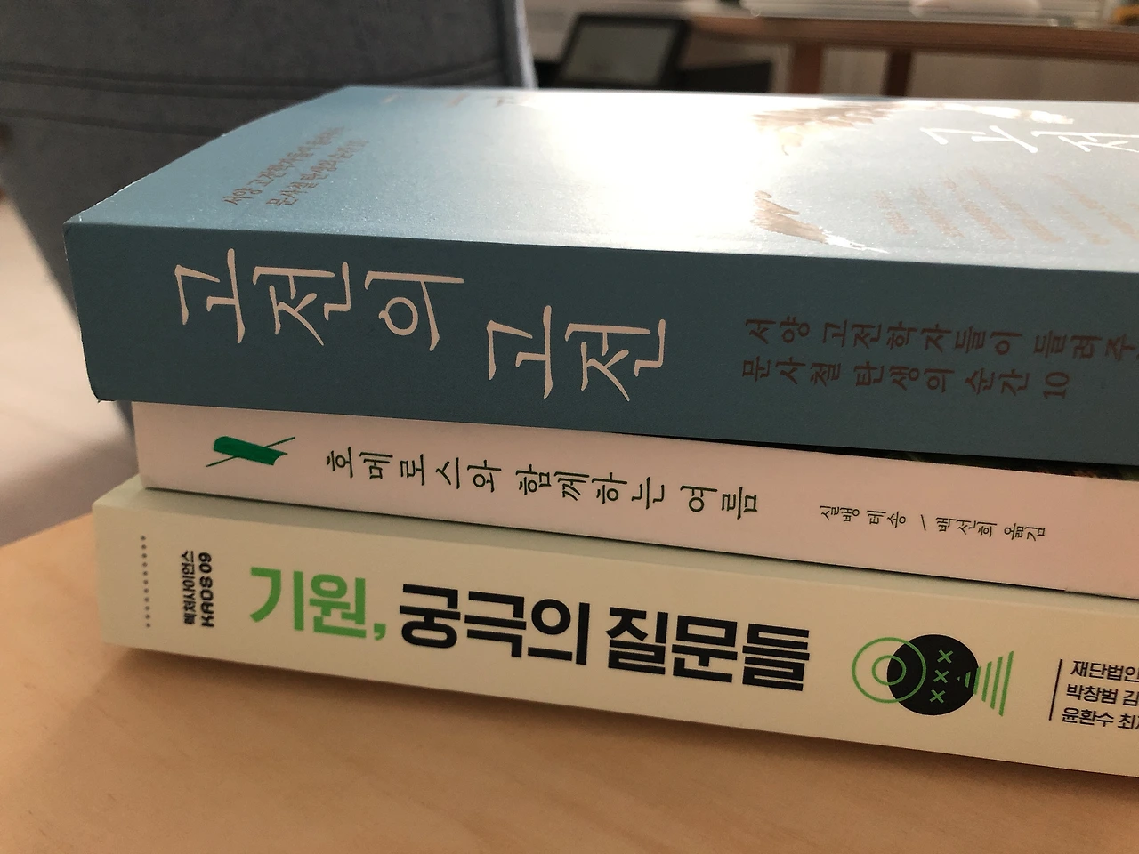 맨 아래에 있는 이 책 『기원, 궁극의 질문들』은 우리학교 책모임에서 읽어보자고 추천한 책이기도 합니다. 물론, 바로 채택될 것 같진 않네요. 첫 책은 아이스브레이킹용으로 좀더 얇고 쉬운 책을 선정하게 될 듯 해요. 아직 서로 어색한데 만나자마자 갑자기 세상의 기원을 논하자면 좀 머리가 아플 수도 있겠지요.